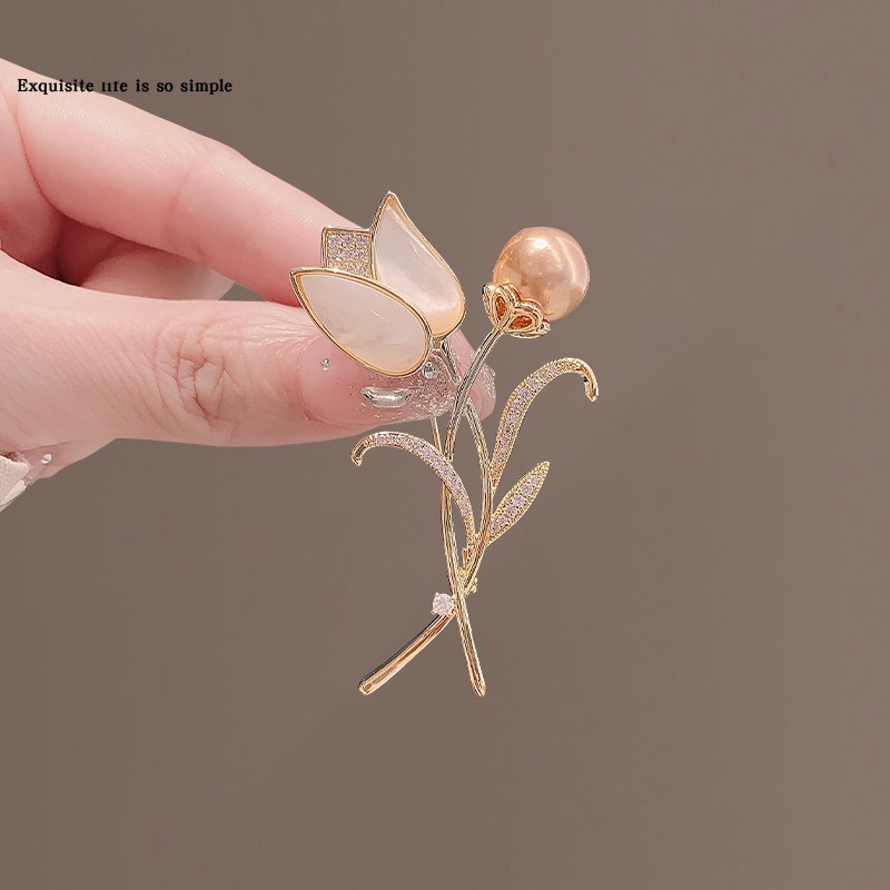 | nameOriginal | Exquisite Tulip Women's high-grade Pearl Crystal corsage elegant flower shawl buckle pin coat suit brooch |