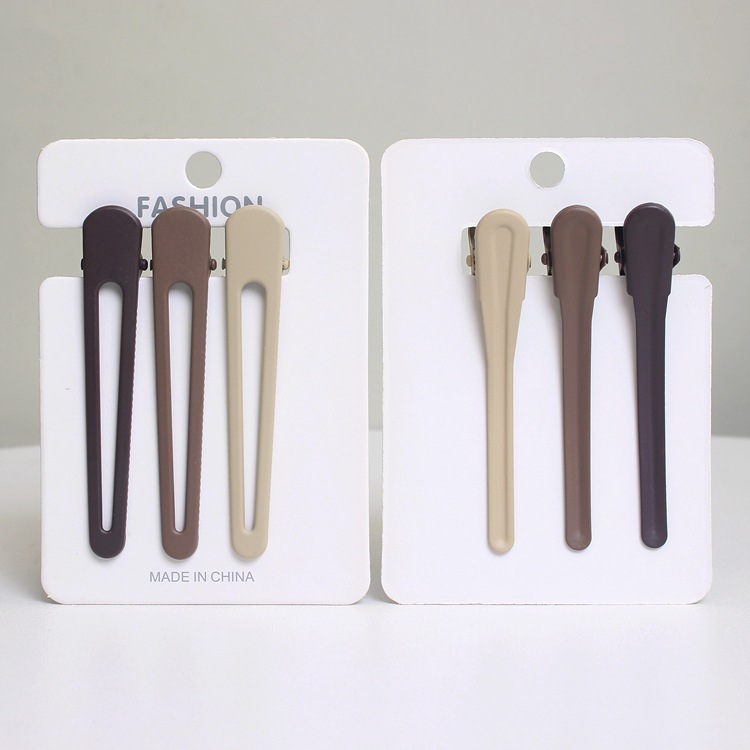Extended seamless metal hairpin high-grade 3 PCs suit shredded hair side clip simple milk tea brown bangs clip