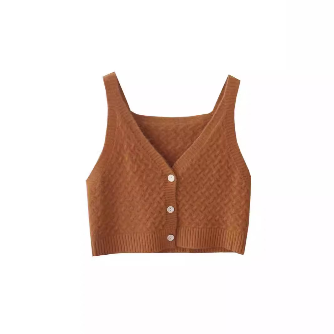 External Spring and Autumn 2023 Fashion Vest Solid Color V-neck Elegant Vest Slim Sleeveless Knitted Top for Women