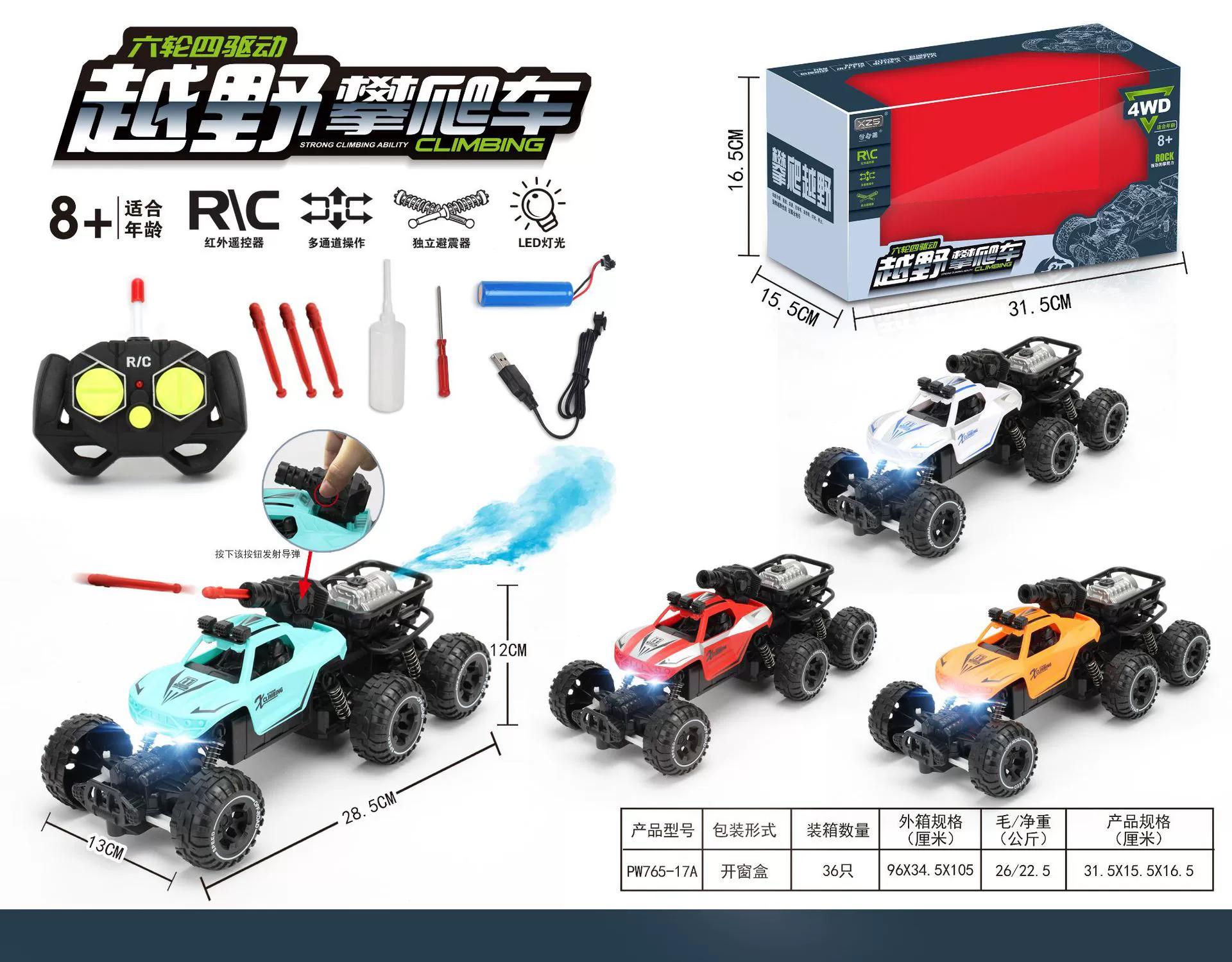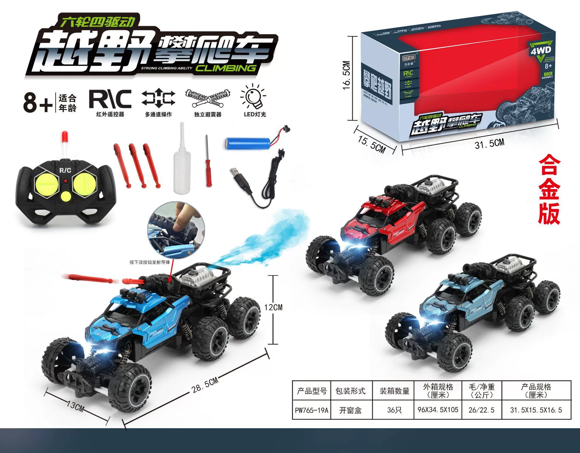 | nameOriginal | Extra large children's remote control car charging remote control car toy high-speed four-wheel drive off-road vehicle spray climbing car for boys |