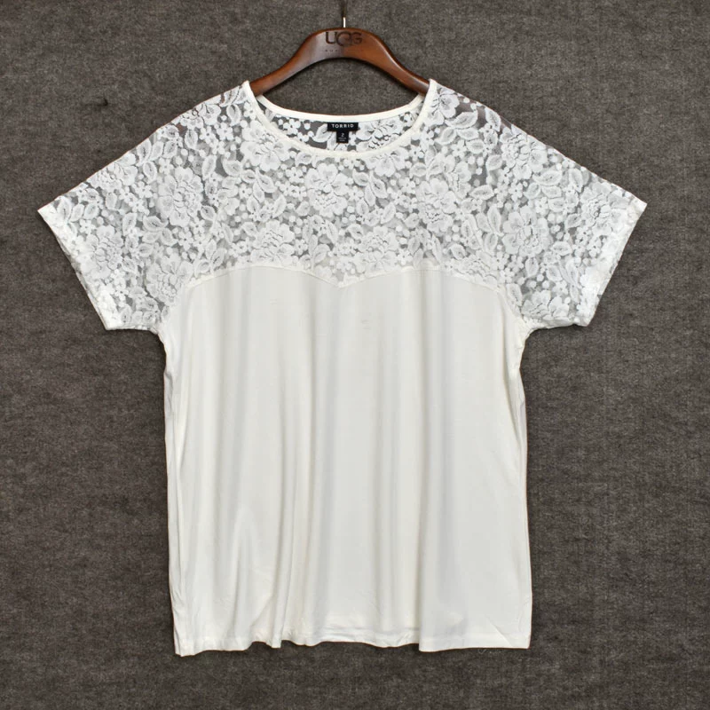 | nameOriginal | Extra large cotton lace panel cut-out short-sleeved T-shirt |