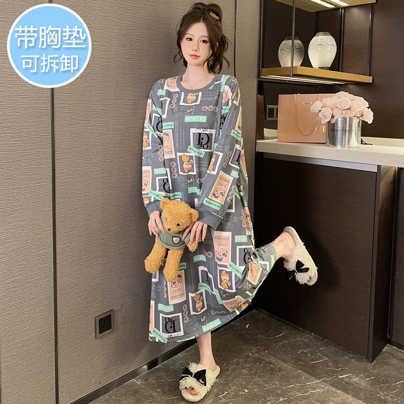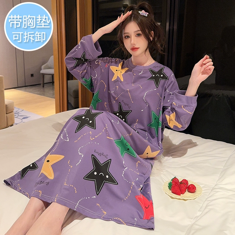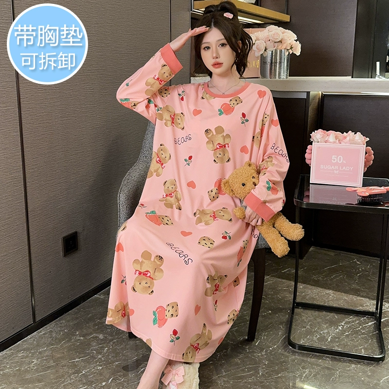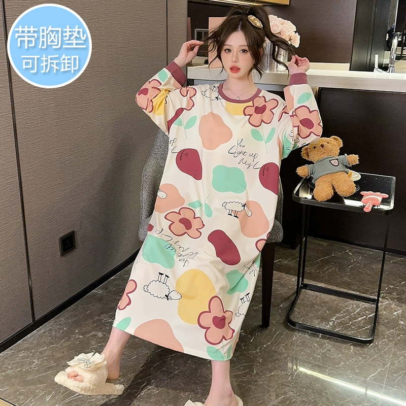 | nameOriginal | Extra large size 200 pounds spring and autumn style nightgown for obese women pregnant women |