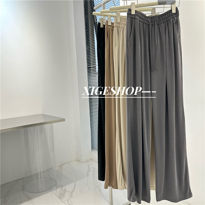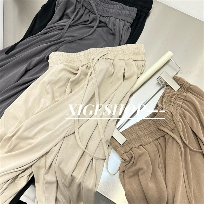 Extra Large Size 200kg copper ammonia silk mop pants women’s summer draping comfortable loose elastic high waist straight wide leg pants
