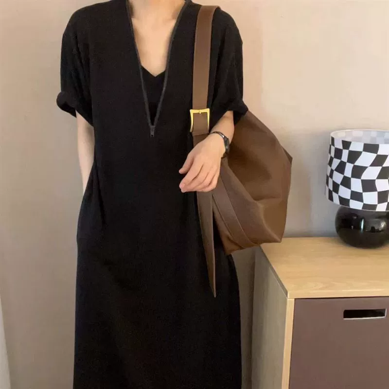 | nameOriginal | Extra large size 300 catties fat mm French Hepburn style zipper dress for women loose slimming belly-covering casual mid-length skirt 2 |