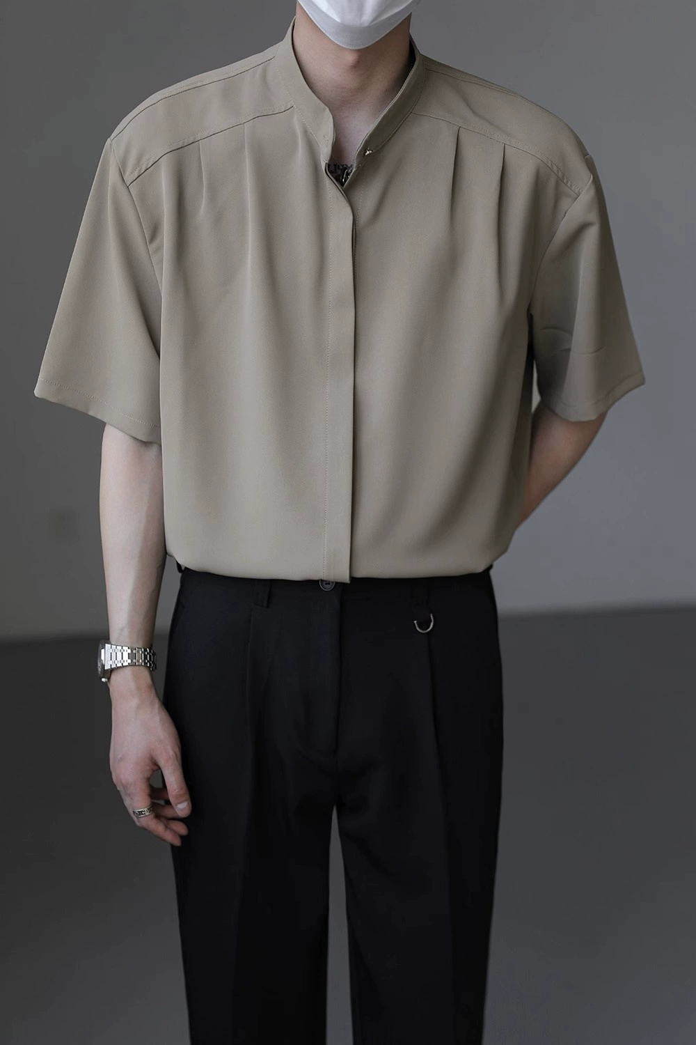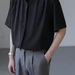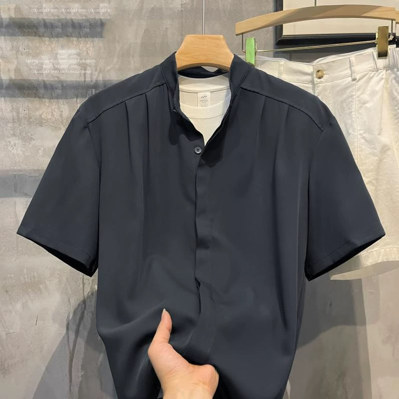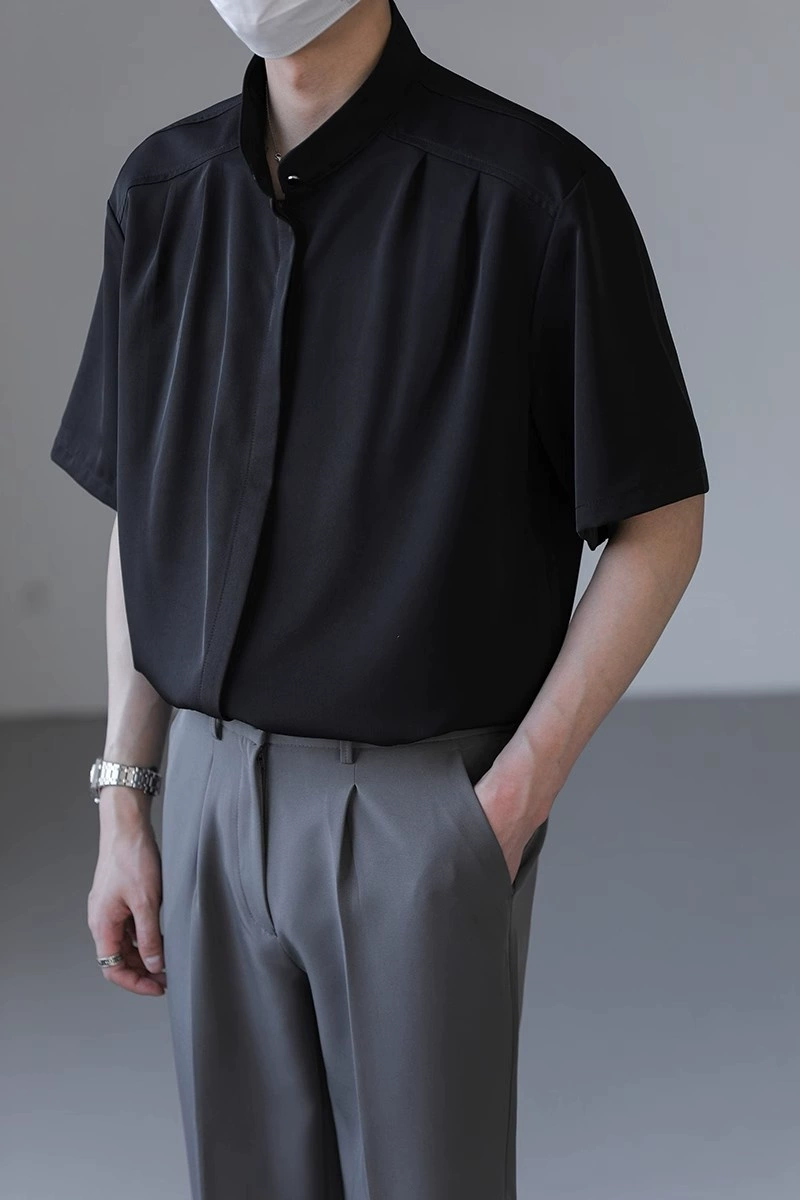 | nameOriginal | Extra large size 300 pounds drapey stand collar short-sleeved shirt |