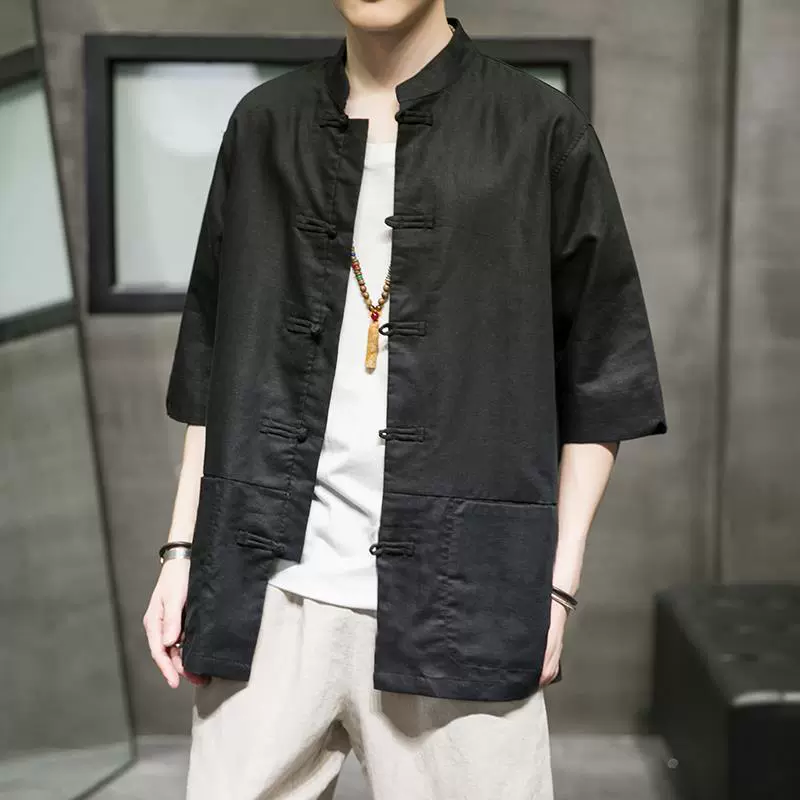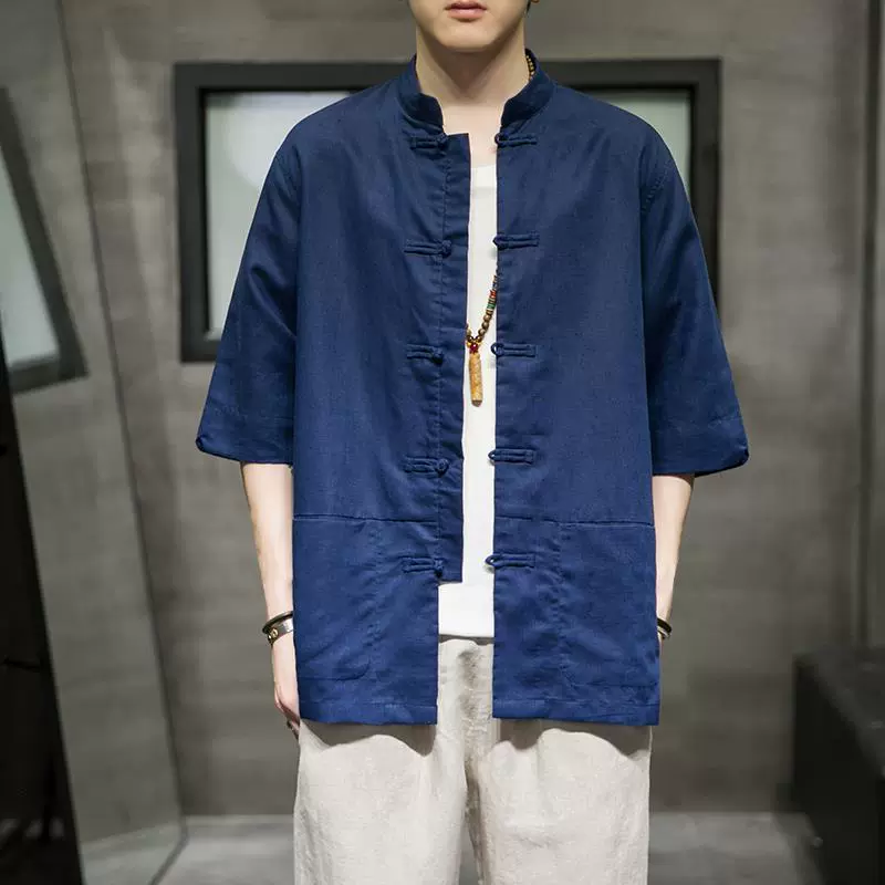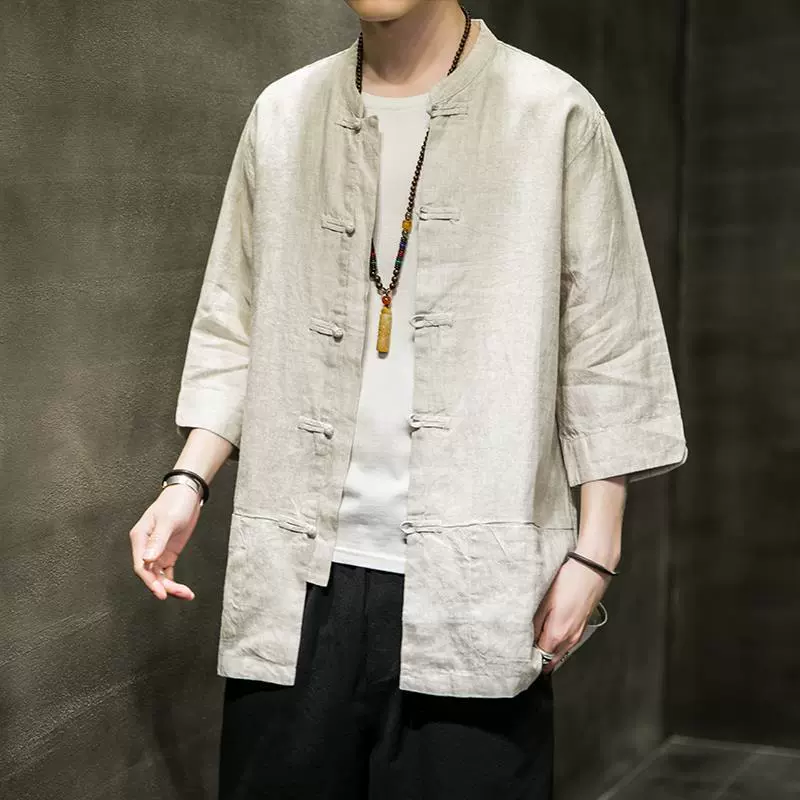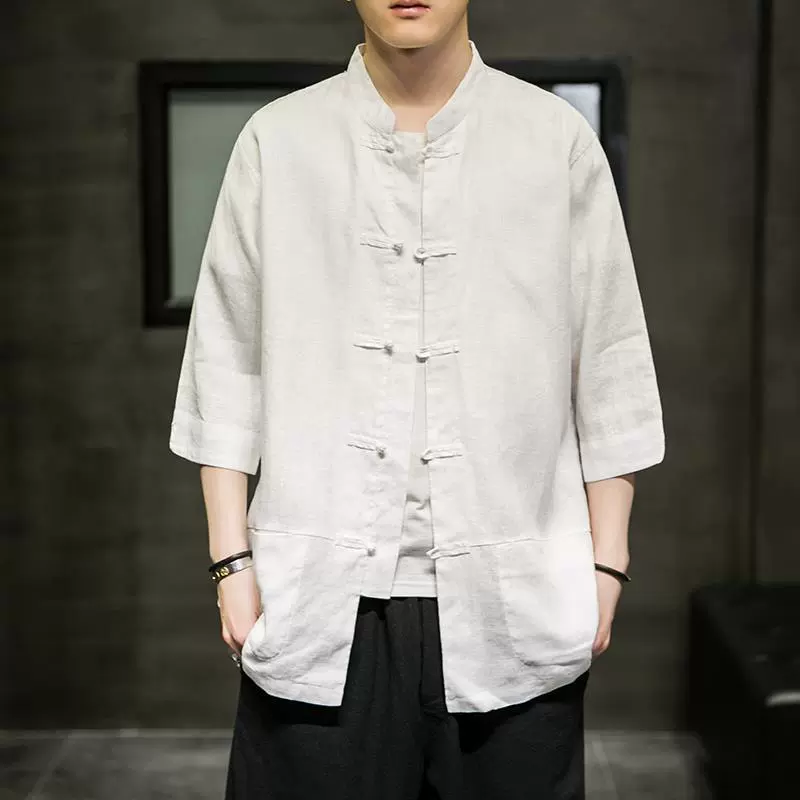 | nameOriginal | Extra large size 300 pounds linen shirt men's short-sleeved Chinese style three-quarter sleeve button-down shirt summer cotton and linen thin |