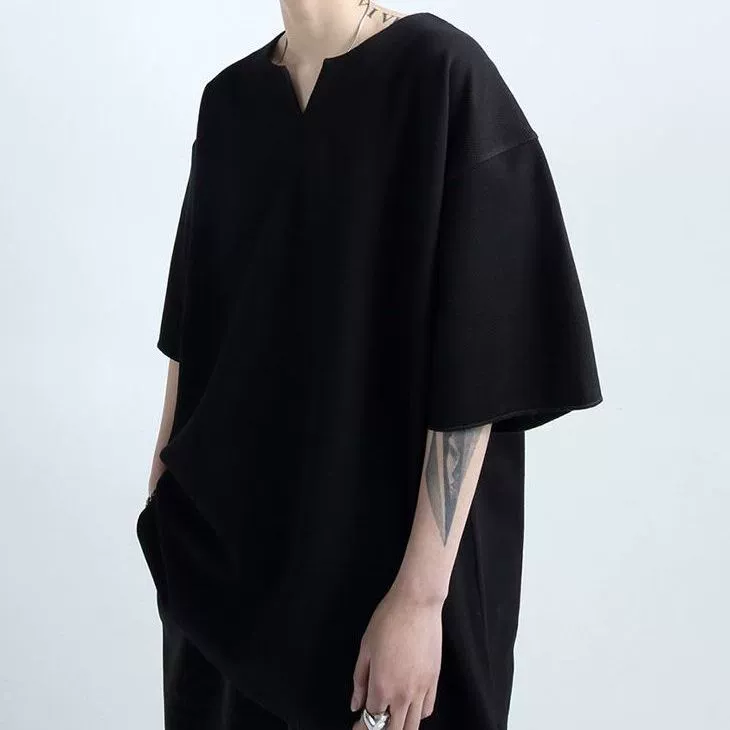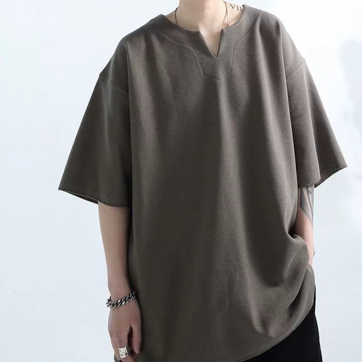 | nameOriginal | Extra large size 300 pounds retro V-neck short-sleeved T-shirt men's summer American fashion brand drape loose half-sleeved top 2 |