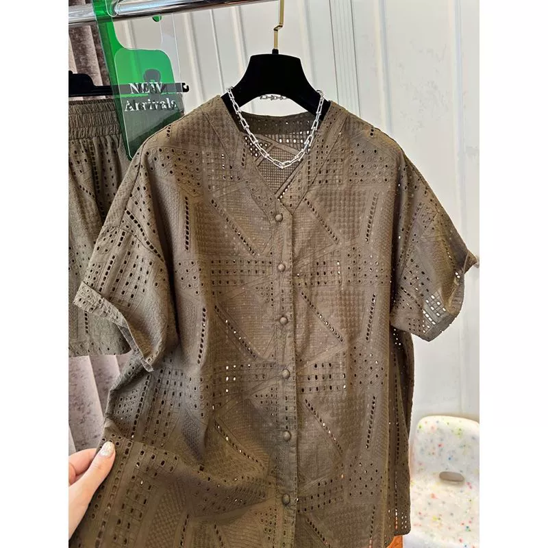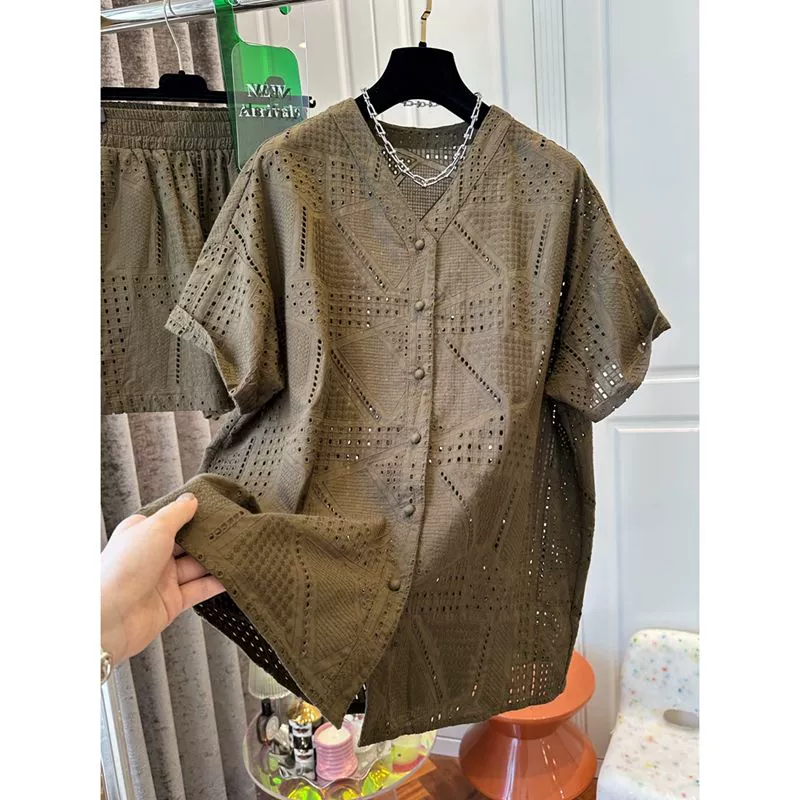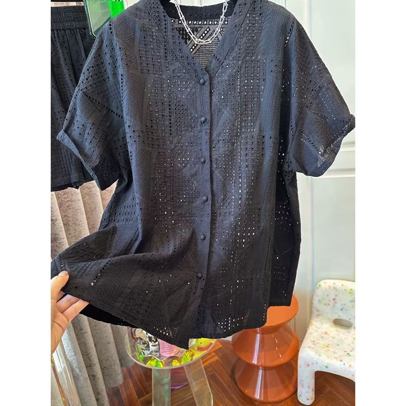 | nameOriginal | Extra large size European retro street style hollow short-sleeved shirt |