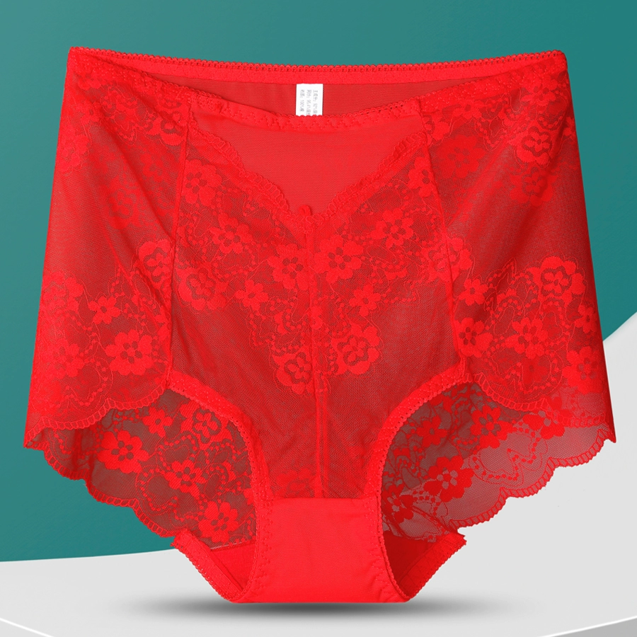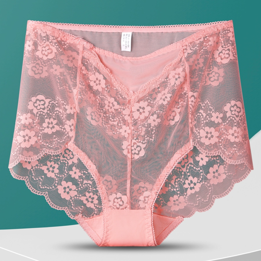 Extra -size lace underwear, high waist, fat MM250 pounds of sexy mesh, summer ultra -thin breathable briefs, no legs
