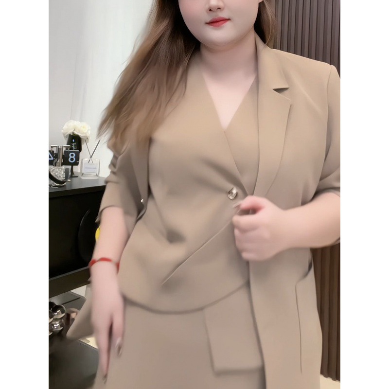 | nameOriginal | Extra Large size women's clothing for 350 chubby girl suit vest half skirt three-piece suit professional casual temperament jacket |