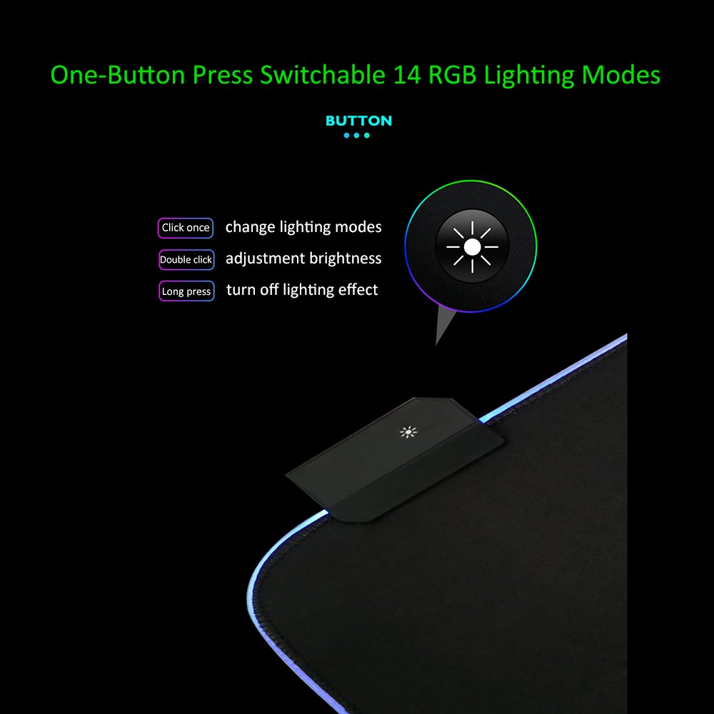 | nameOriginal | LEDs RGB Mouse Pad 14 Lighting Modes Gaming Extra Large Soft Extended Non Slip Mousepad For Computers Gamer |