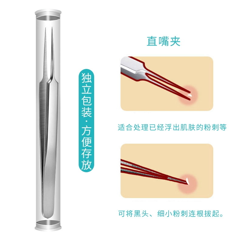 Extra-sharp white-headed tweezers with straight mouth for acne pimples