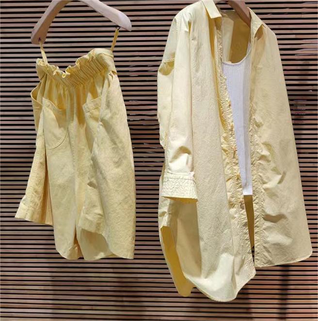 | nameOriginal | Extras suit Shirt Shorts Small Shirt Women's Yellow Chubby 300 Jin Casual Fashion Summer Two-Piece Set |