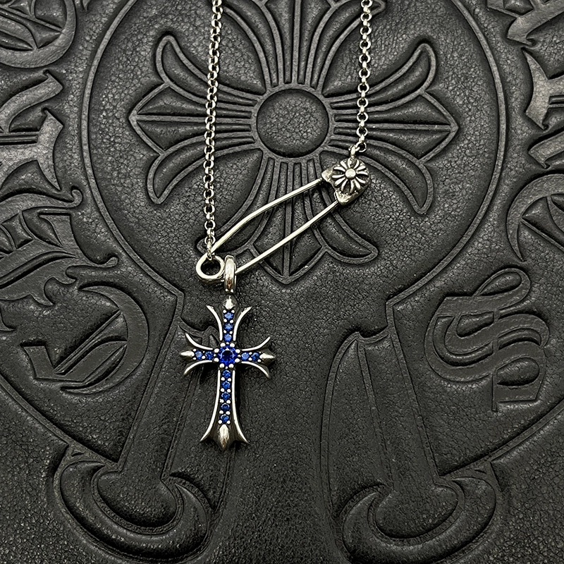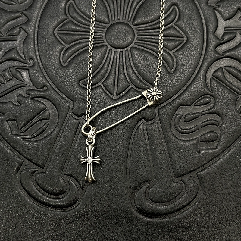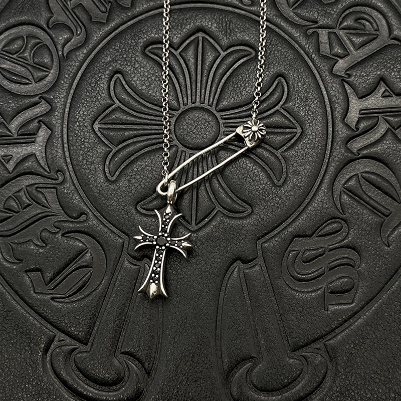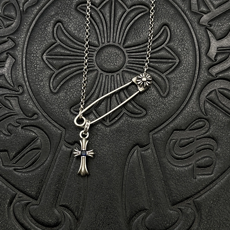 Extreme retro double cross pin necklace men's and women's personalized clavicle chain cross flower classic sexy