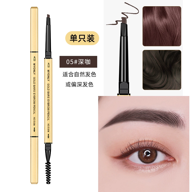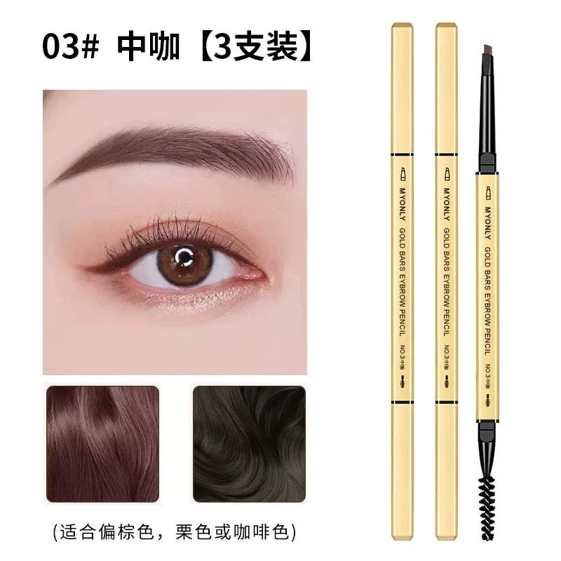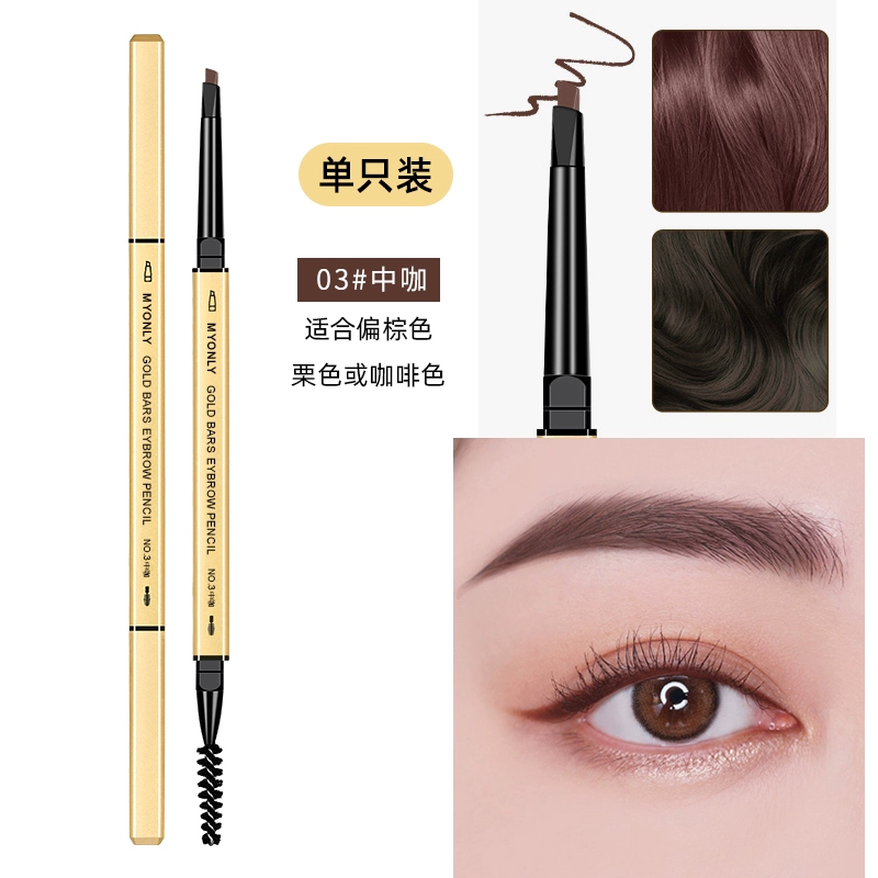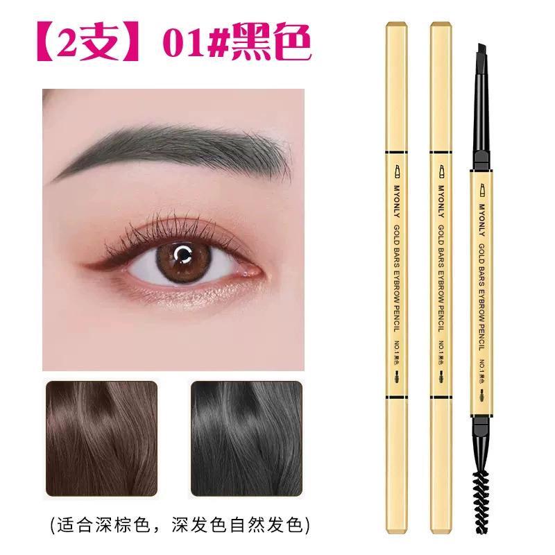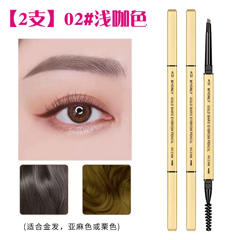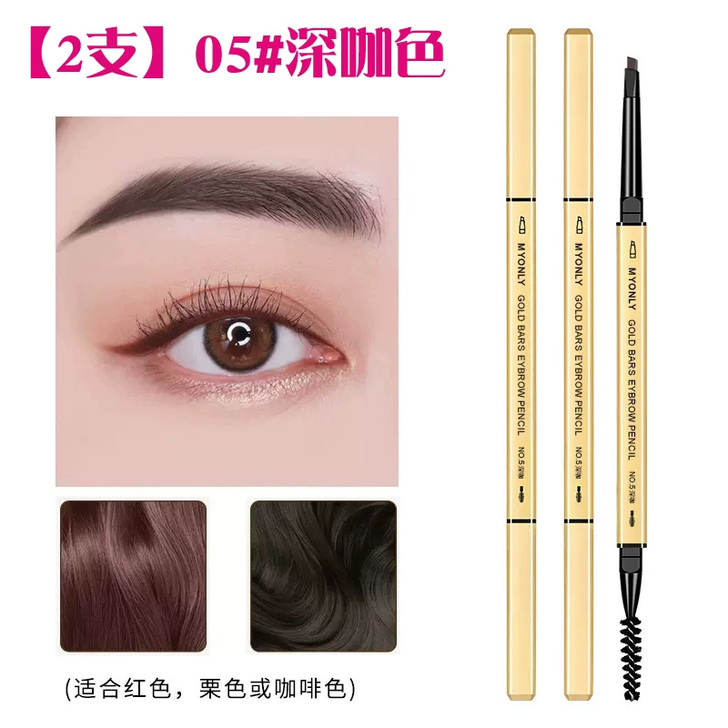 Eyebrow pencil is long-lasting, non-fading, extremely fine and has distinct tips, small gold bars