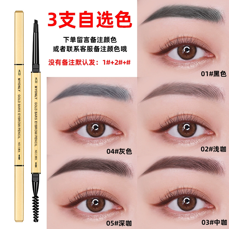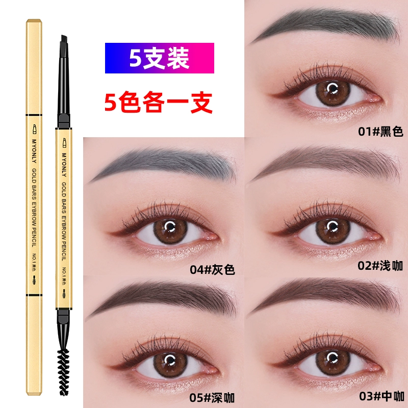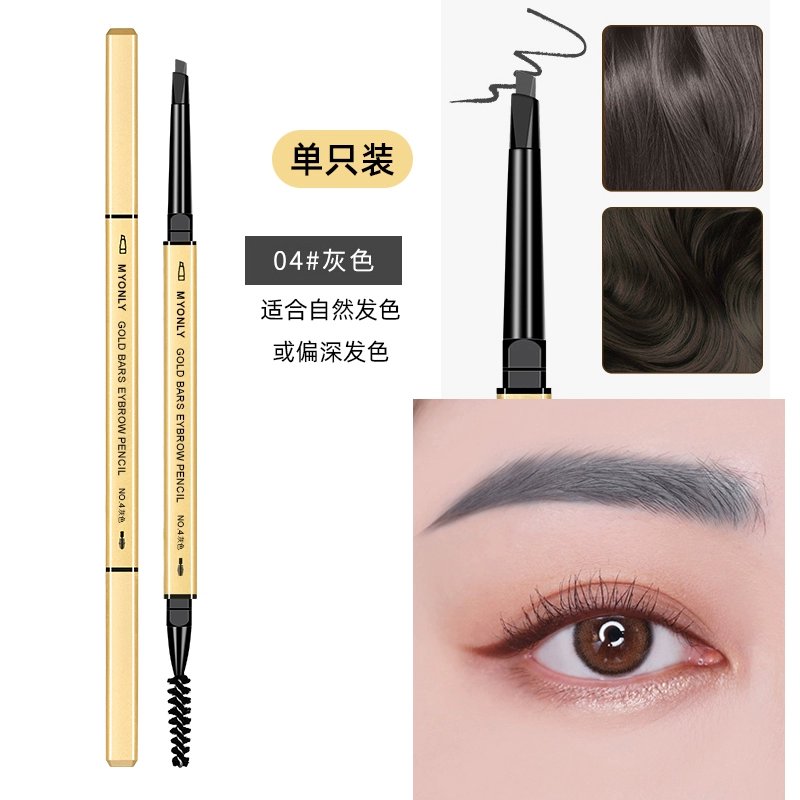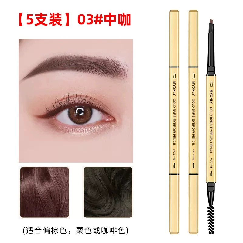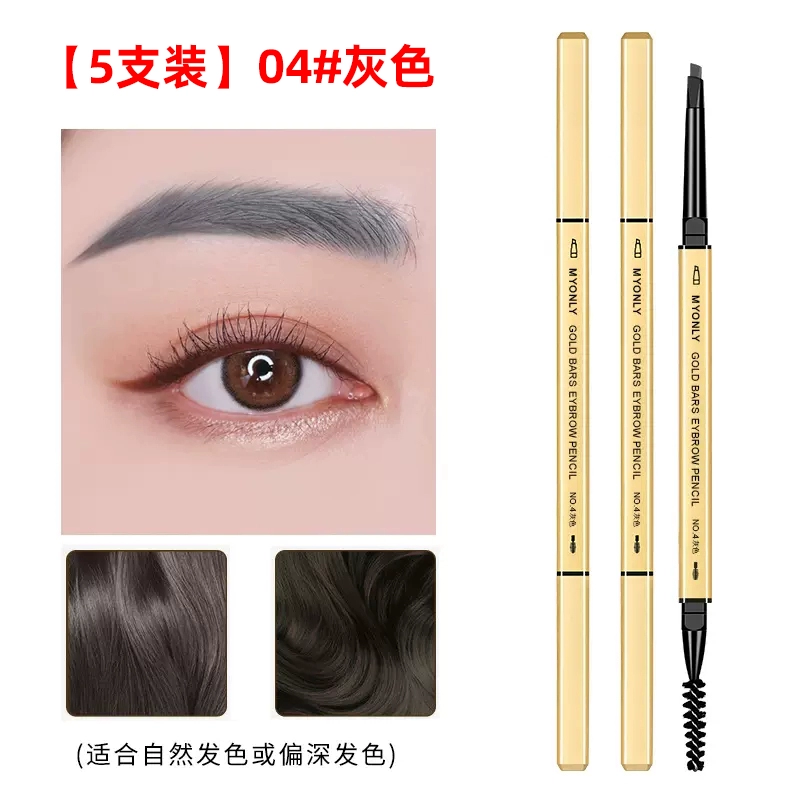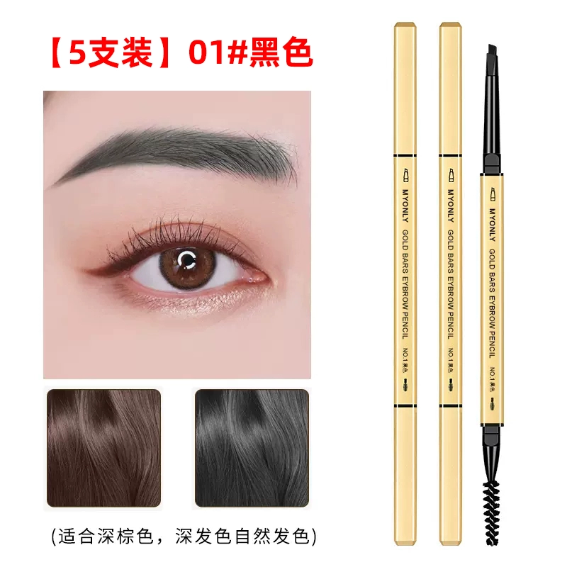 Eyebrow pencil is long-lasting, non-fading, extremely fine and has distinct tips, small gold bars