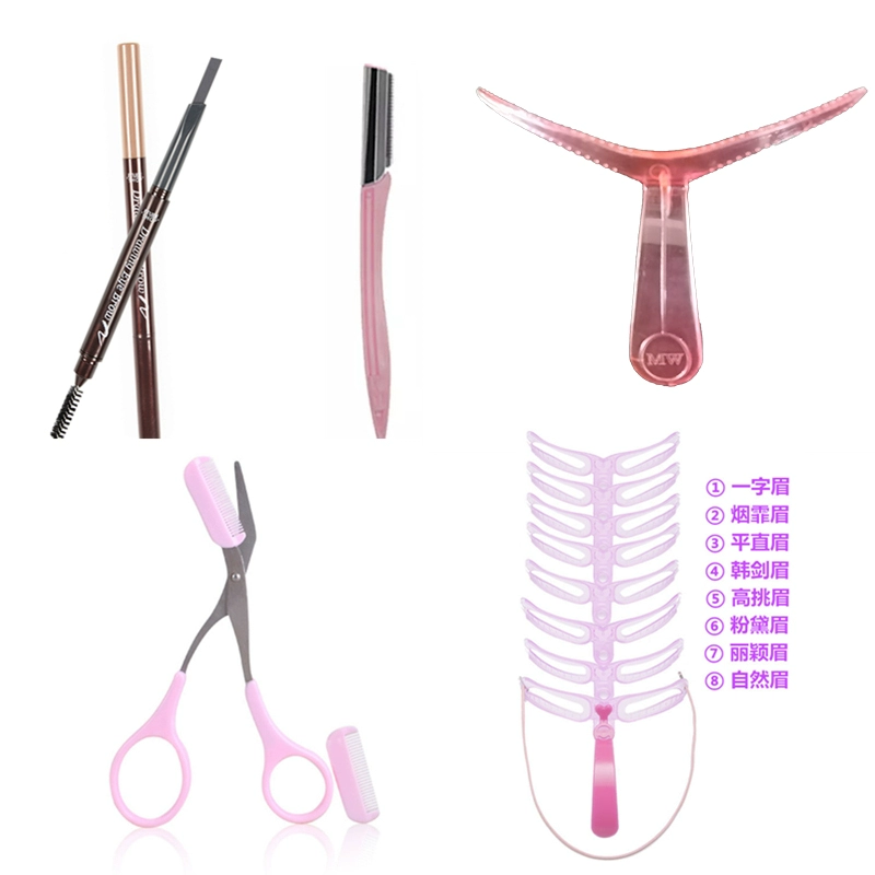 Eyebrow trimming tool set, full set of eyebrow scissors, double-headed eyebrow pencil with eyebrow brush, all-in-one auxiliary tool for tracing new eyebrow shapes