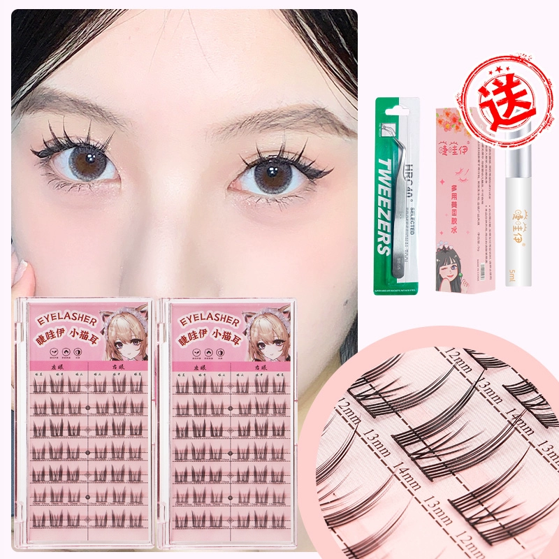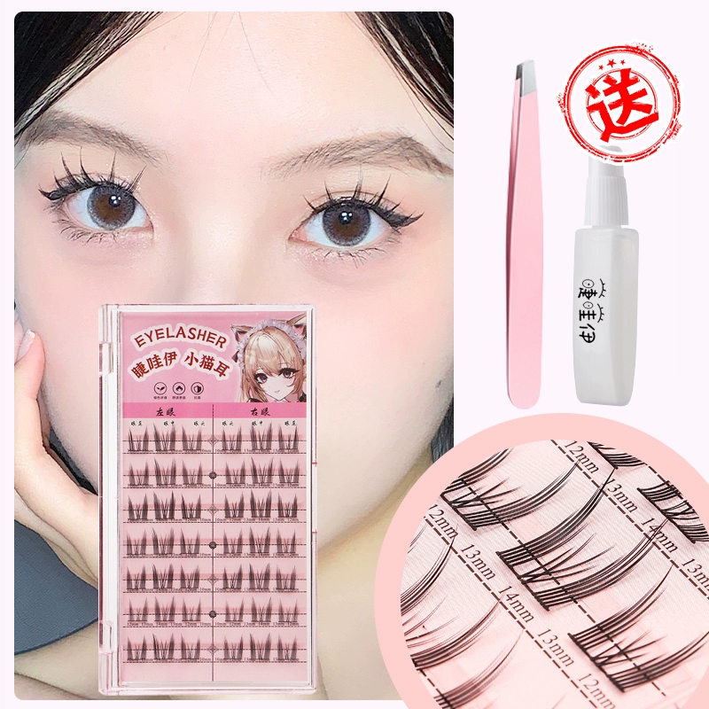 | nameOriginal | Eyelashes, lazy cat elf, kitten ears, segmented false eyelashes, female natural simulation trilogy, little devil new style |