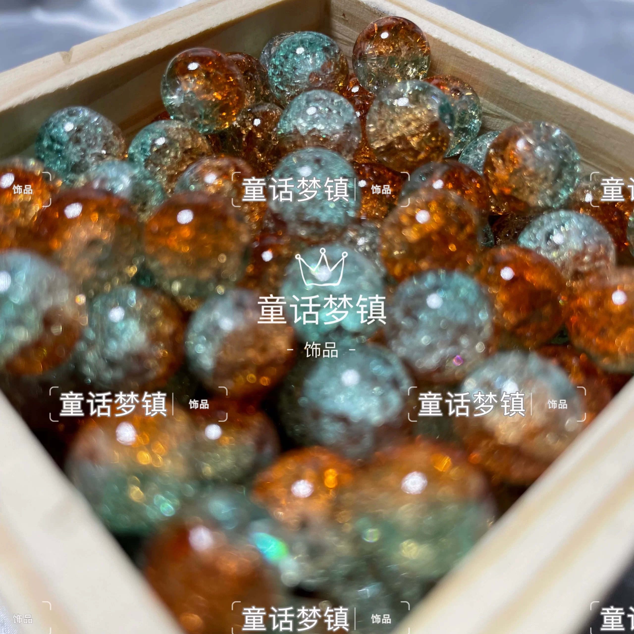 F 10mm transparent crushed gradient two-color round beads handmade DIY bracelet bracelet necklace loose bead fairy jewelry material
