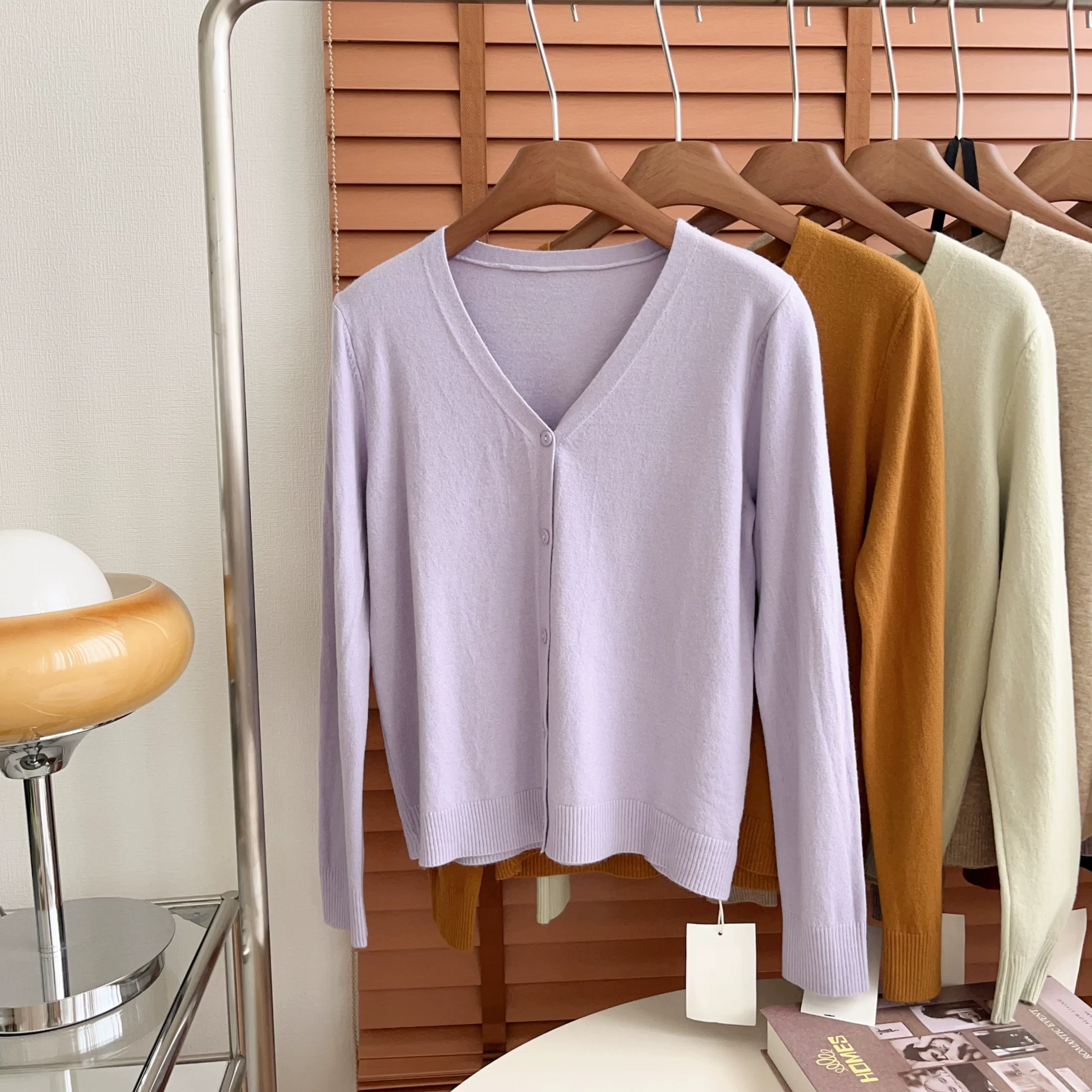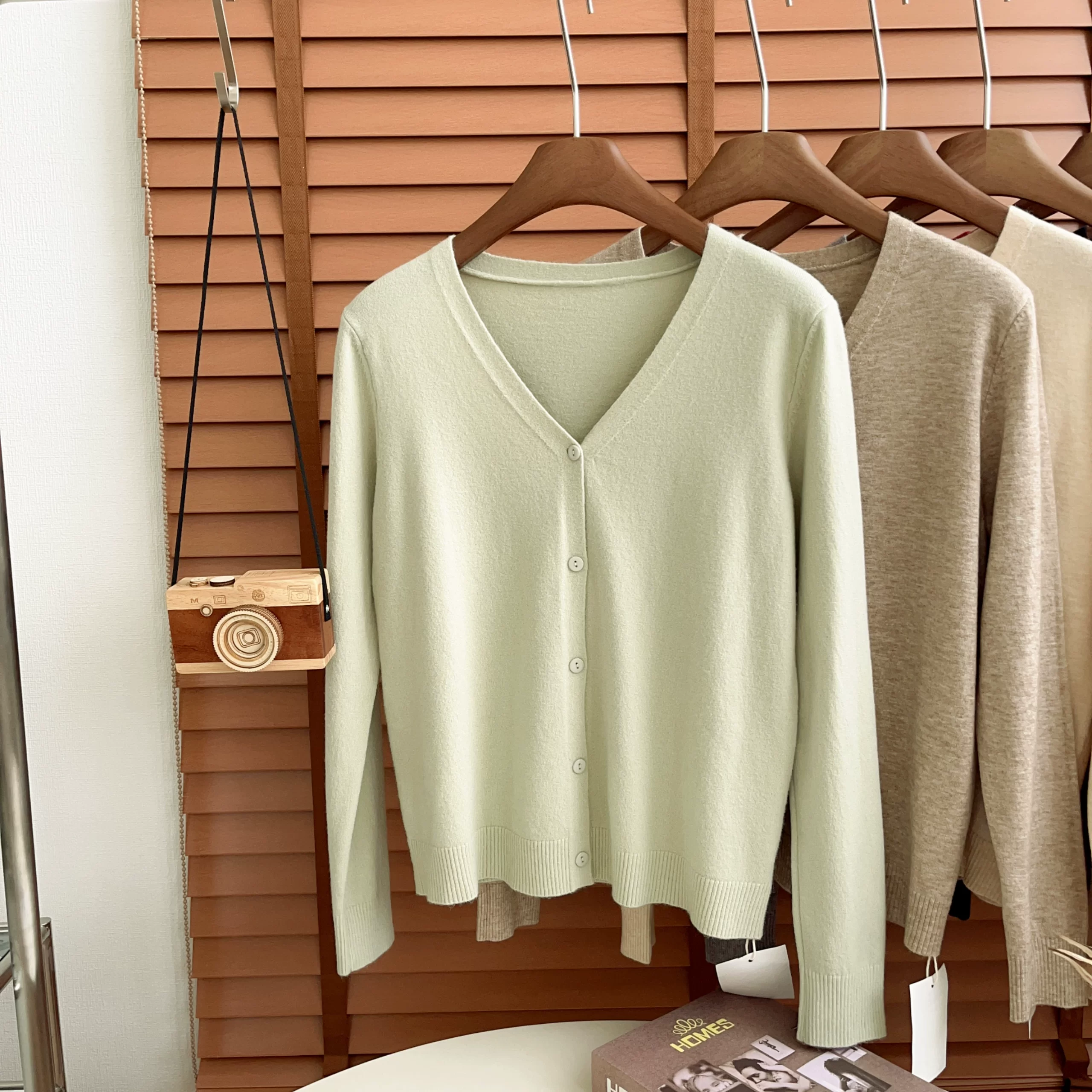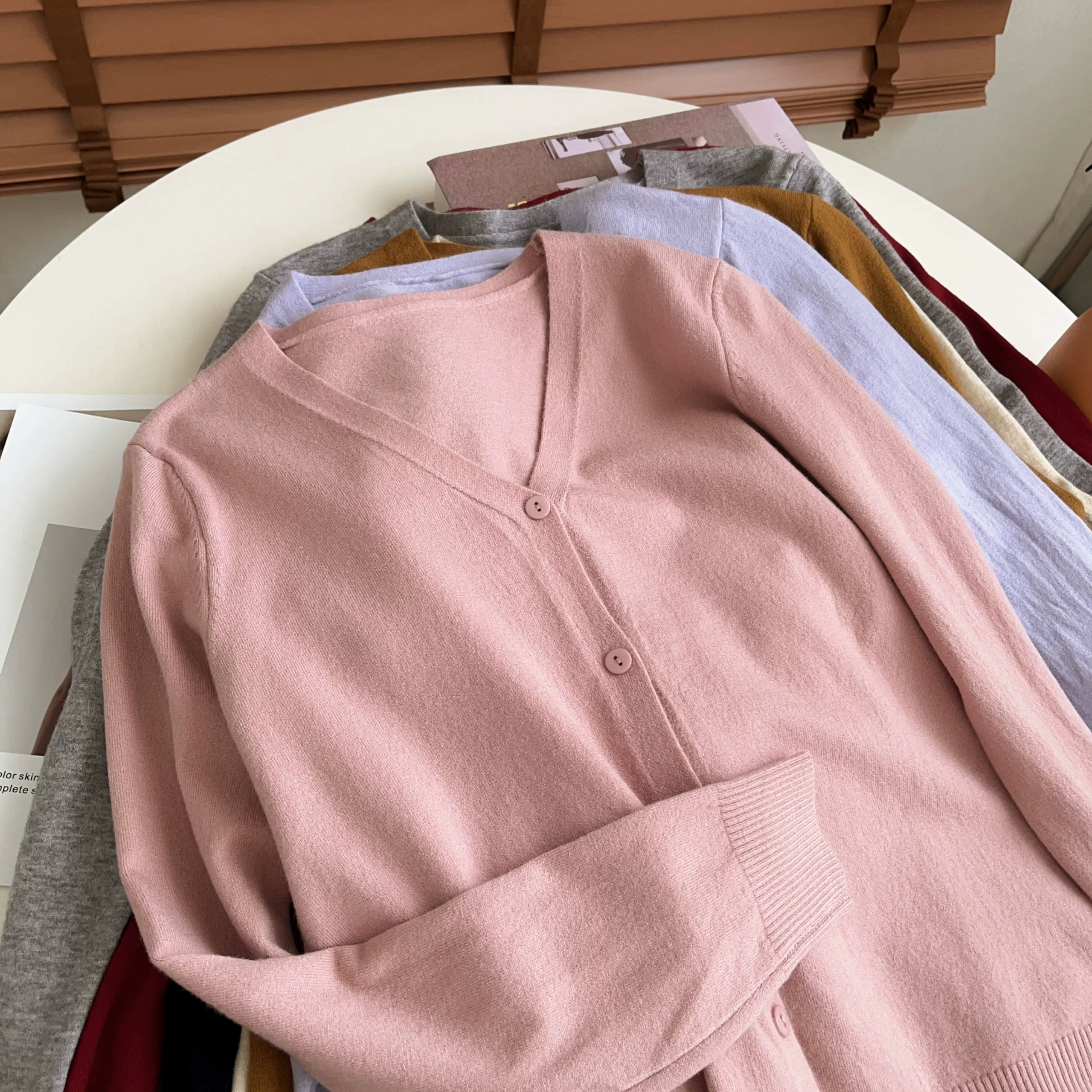 | nameOriginal | F 7200 soft waxy V-neck single-breasted knitted cardigan |