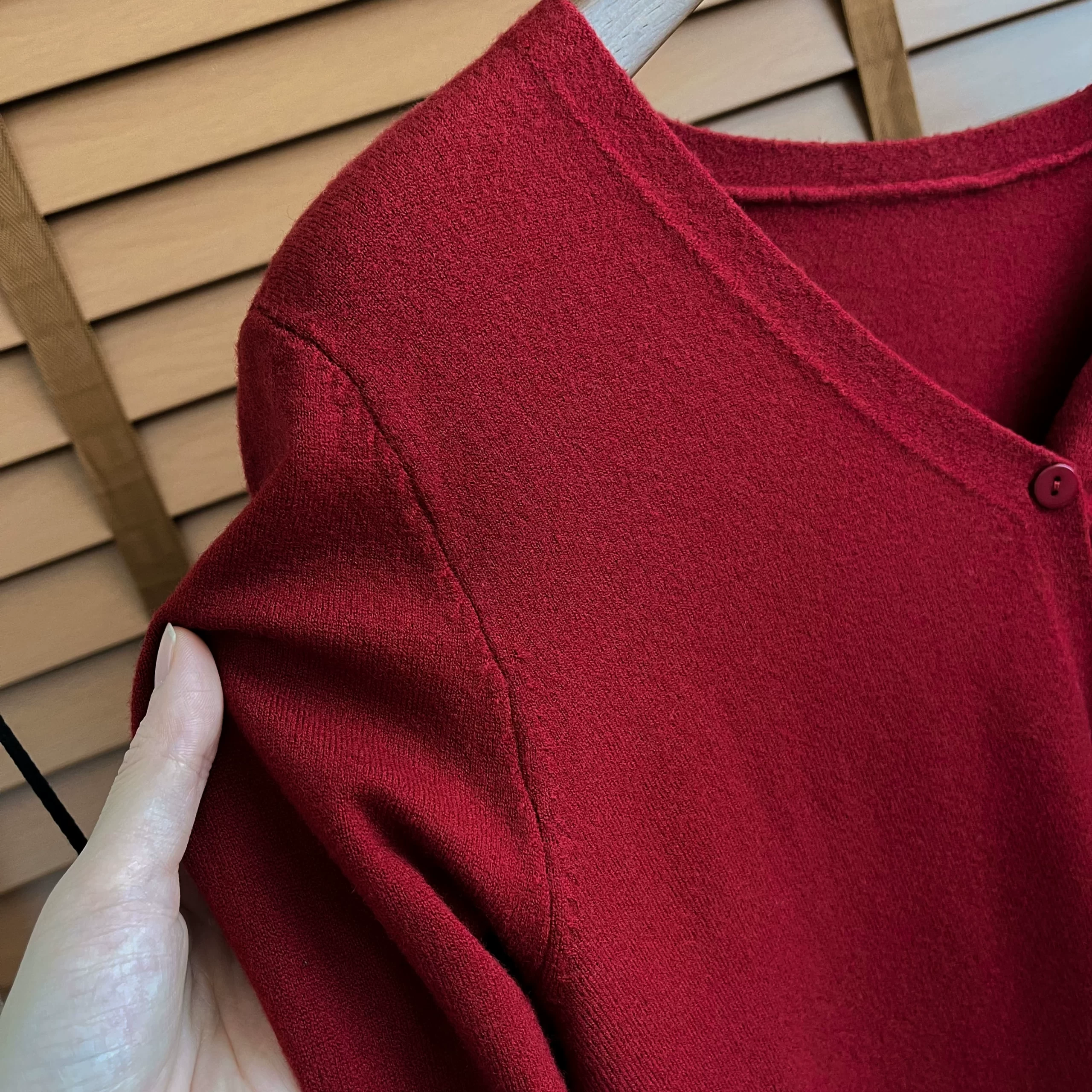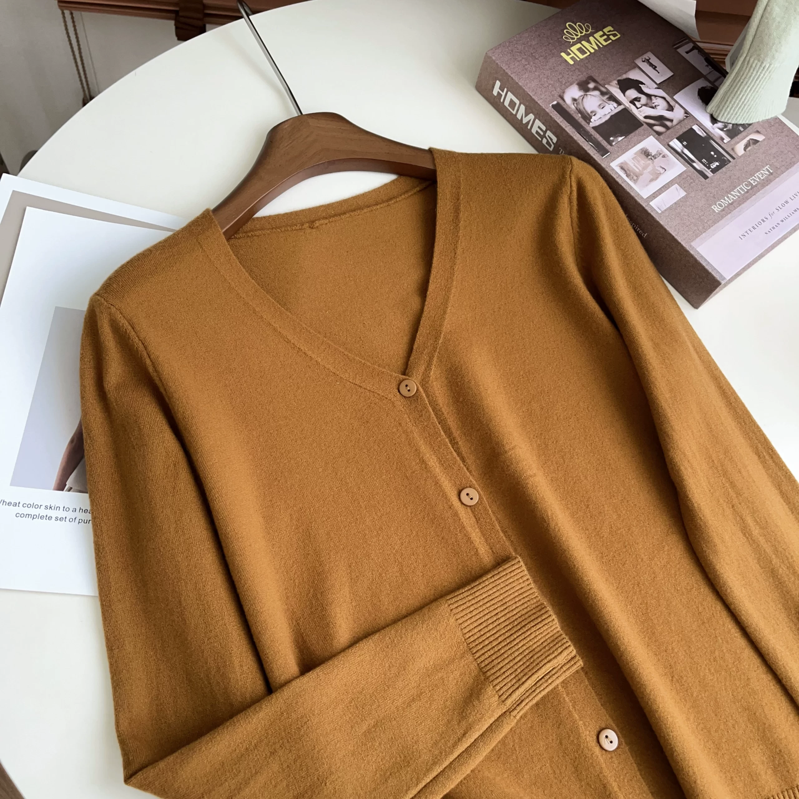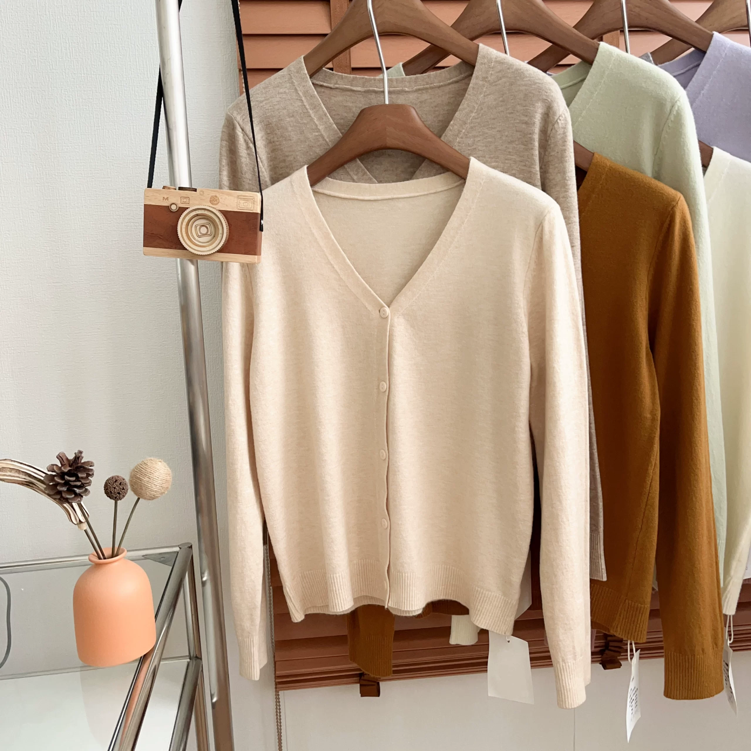 | nameOriginal | F 7200 soft waxy V-neck single-breasted knitted cardigan |