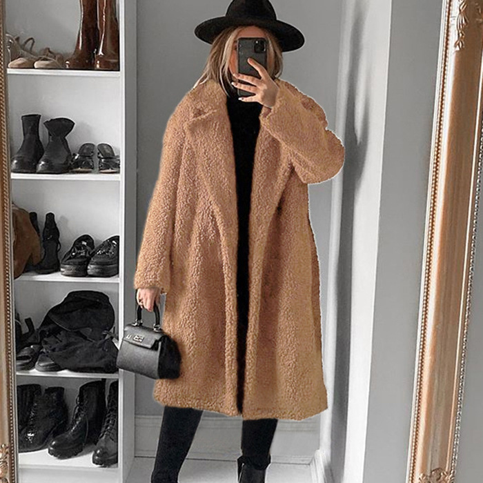 F0362 cross-border autumn and winter New suit collar long imitation fur coat women’s warm plush casual coat
