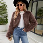 F0588 European and American Cross-border 2023 Fashion Casual Women’s Faux Fur Top Women’s Fur Short Coat Cheng Juan White