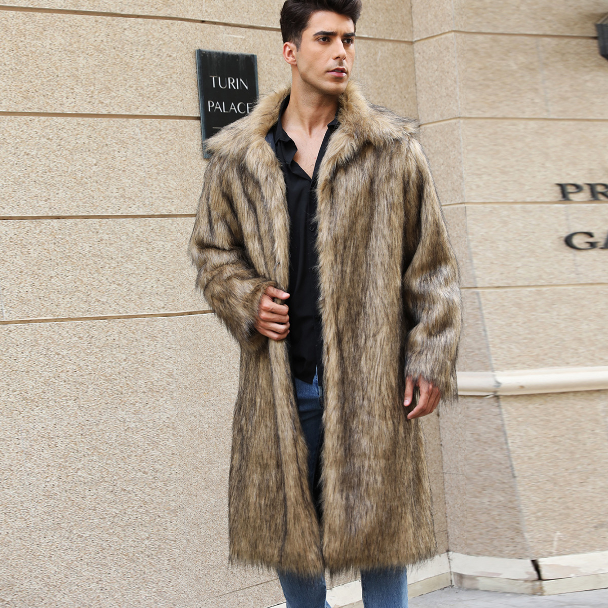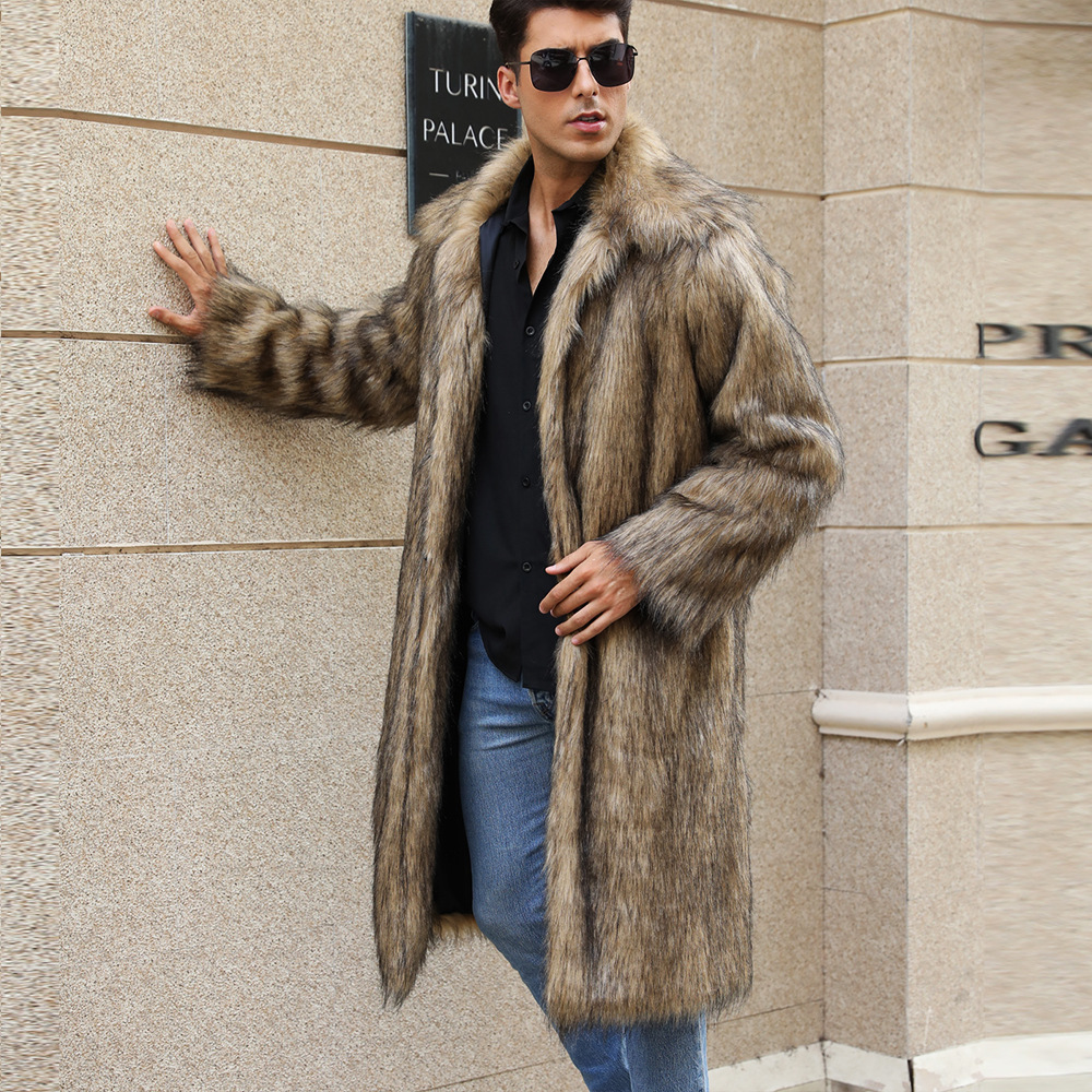 | nameOriginal | F0671 cross-border European and American autumn and winter new yellow lapel faux fox fur men's long faux fur coat coat |