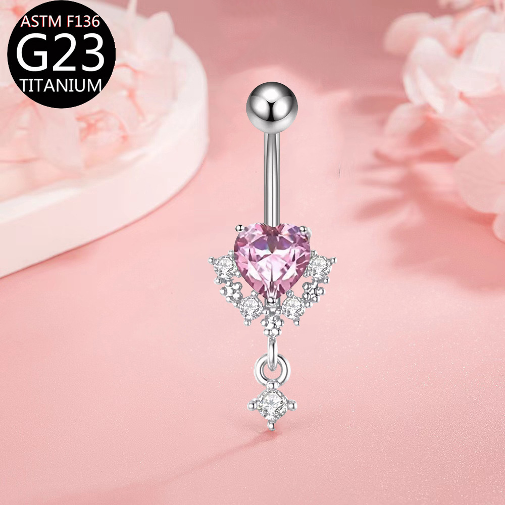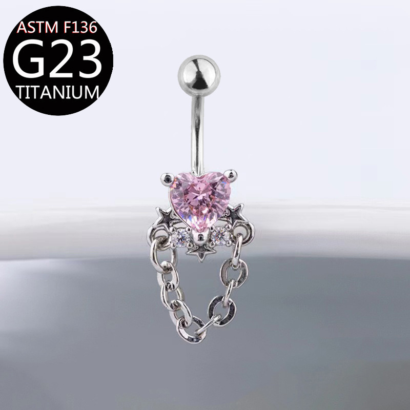 | nameOriginal | F136 anti-allergy nailing heart-shaped zircon chain navel ring colored zircon navel ring G23 anti-allergy jewelry |