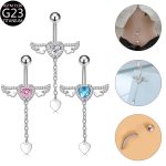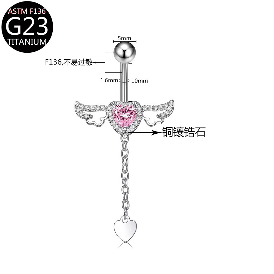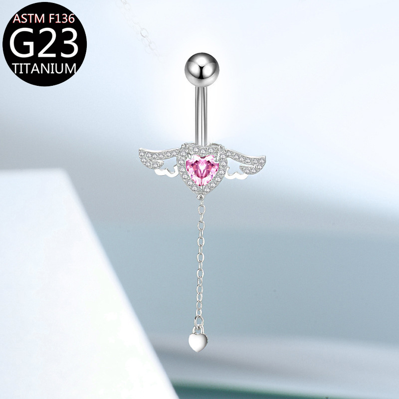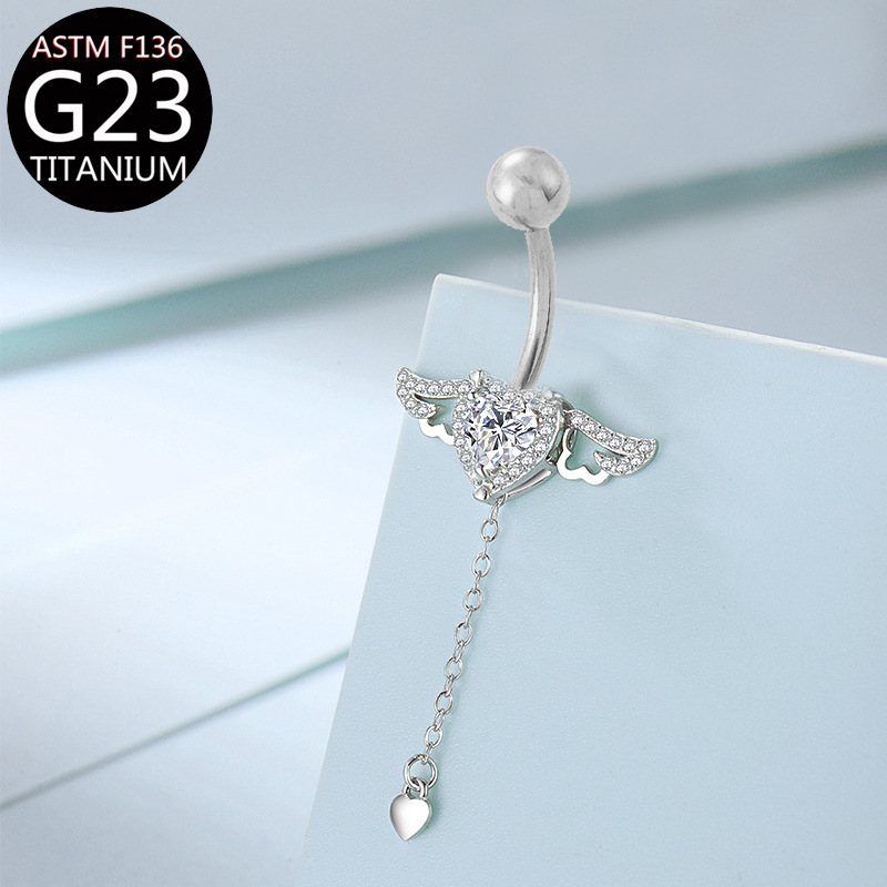 F136 Cupid Heart Belly Button Ring Angel Wings Chain Belly Button Ring G23 Hypoallergenic Piercing Jewelry Wholesale