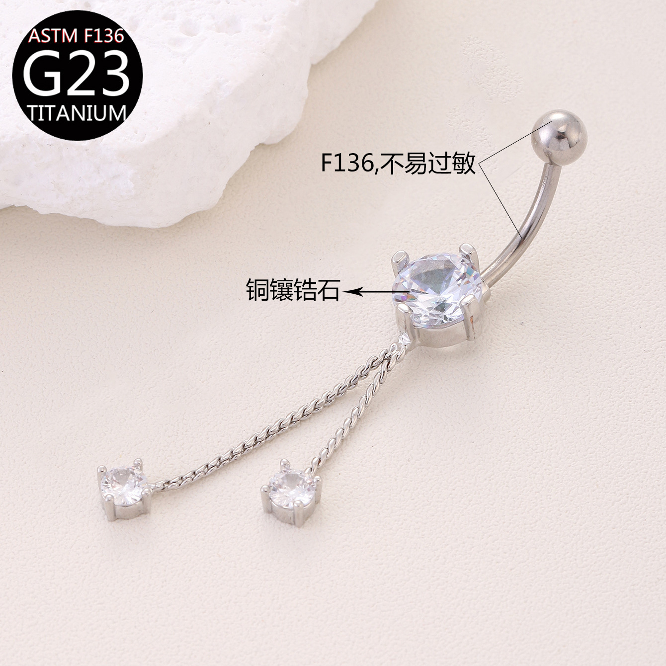 | nameOriginal | F136 long belly button chain terms belly button ring belly button nail G23 anti-allergy European and American puncture jewelry Amazon |