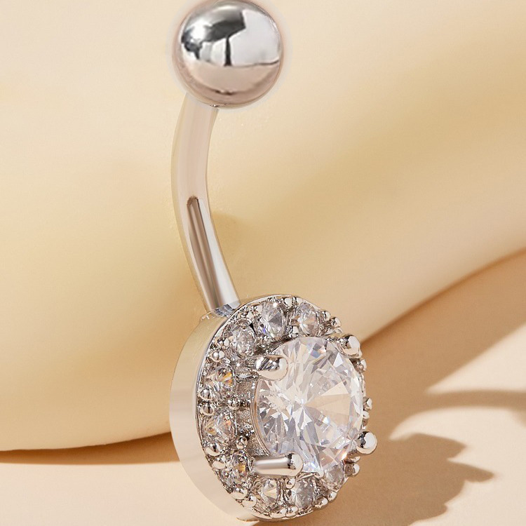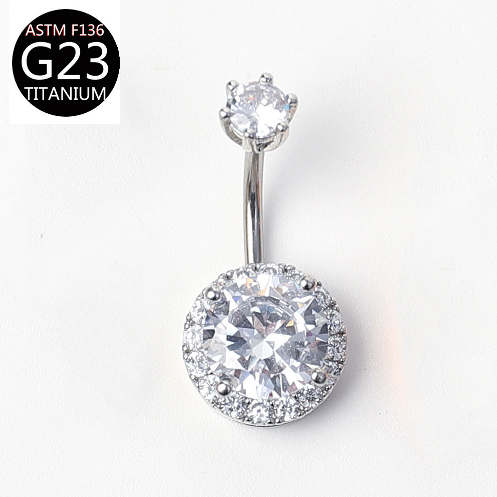 F136 titanium alloy belly button ring belly button nail round set zircon belly button ring G23 anti-allergy puncture jewelry wholesale