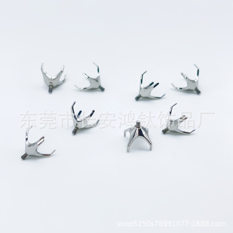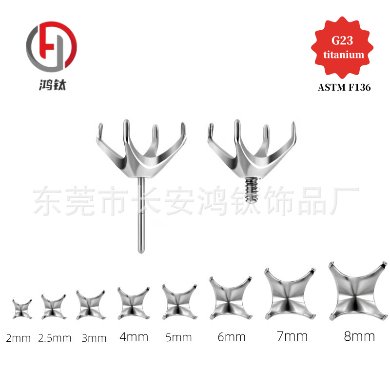 | nameOriginal | F136 titanium alloy four-claw round zircon ear nail holder G23 implant grade titanium ear bone nail internal thread claw drill air holder |