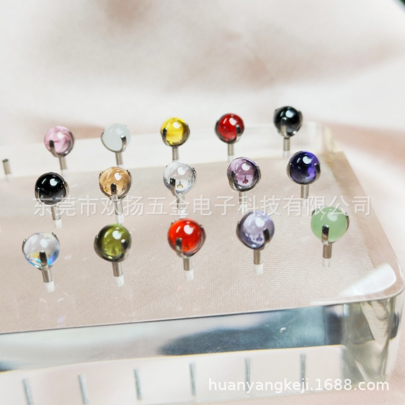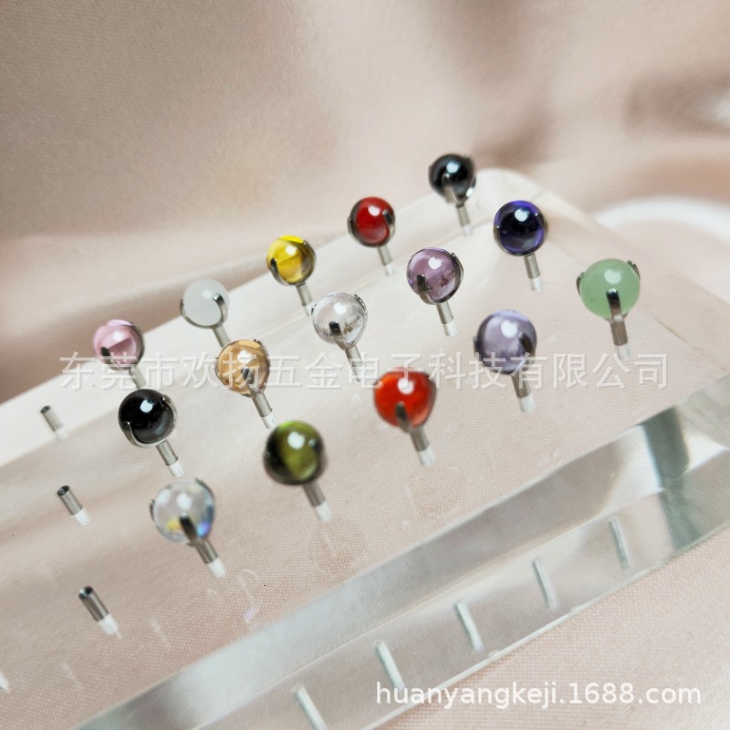 | nameOriginal | F136 titanium alloy high permeability glass beads three-claw ball tongue nail ear nail lip nail internal thread puncture jewelry accessories |