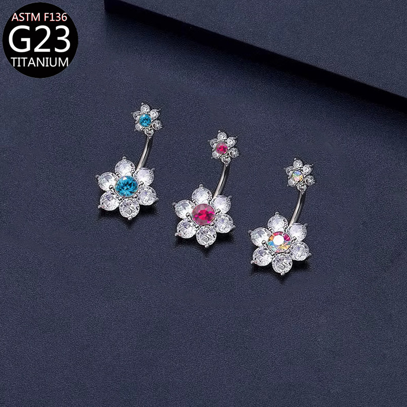 | nameOriginal | F136 titanium alloy navel ring flower set zircon navel ring G23 anti-allergy puncture jewelry navel nail wholesale |