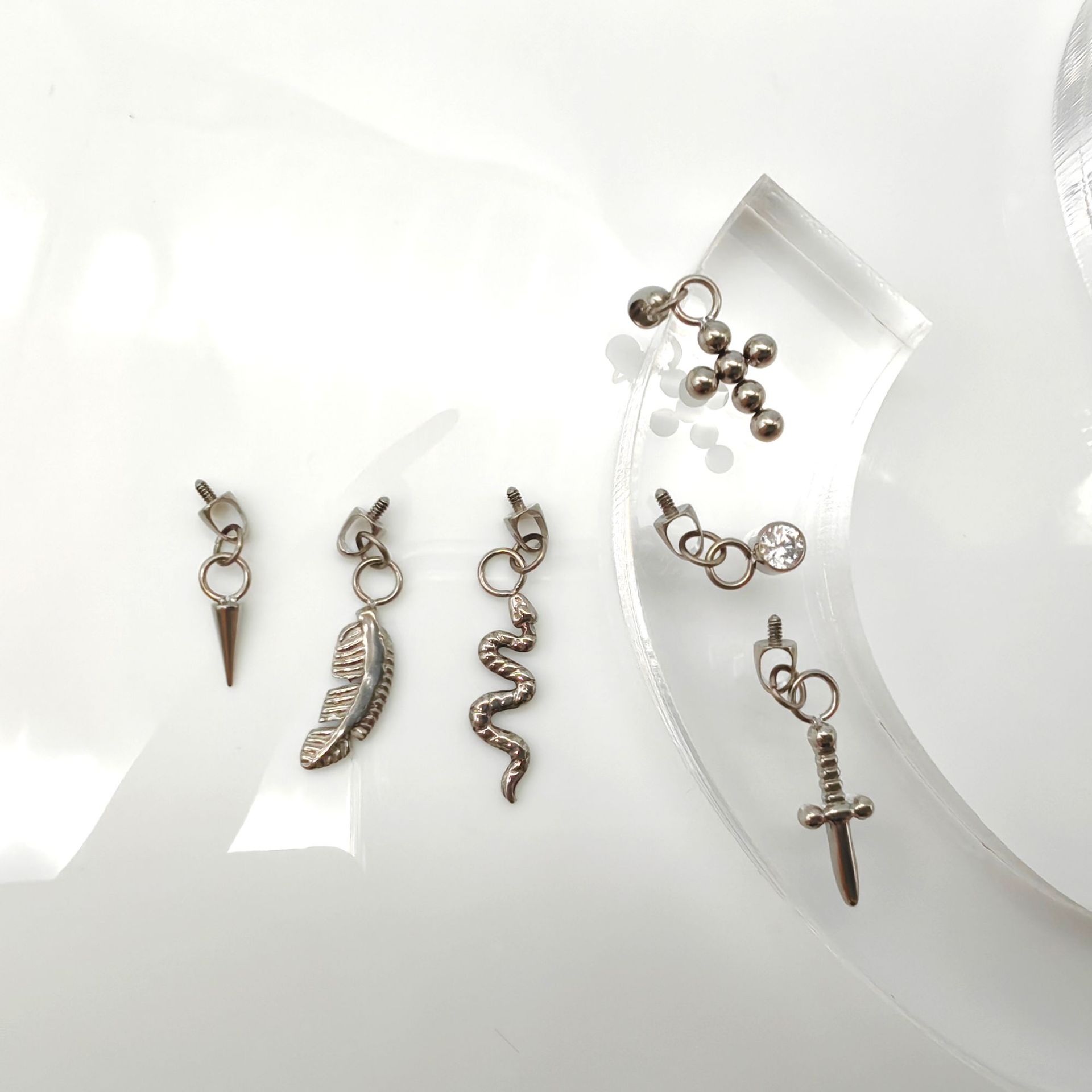 | nameOriginal | F136 titanium alloy sword snake pointed cone zircon pendant earrings lip nails cross-border manufacturers G23 titanium body puncture |