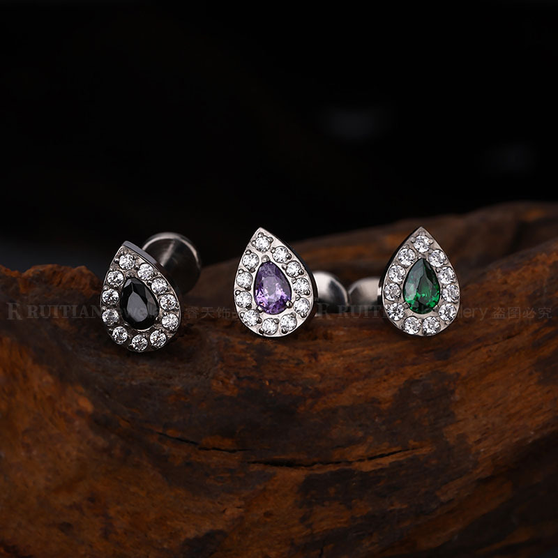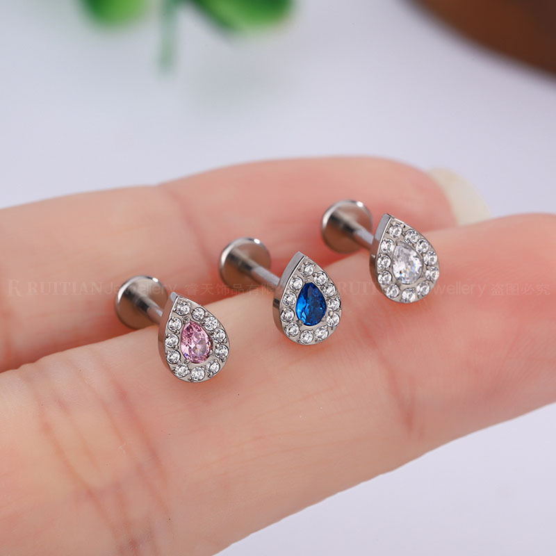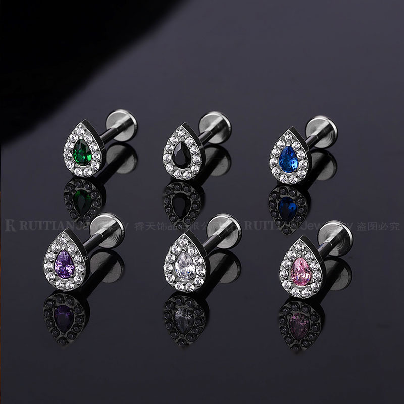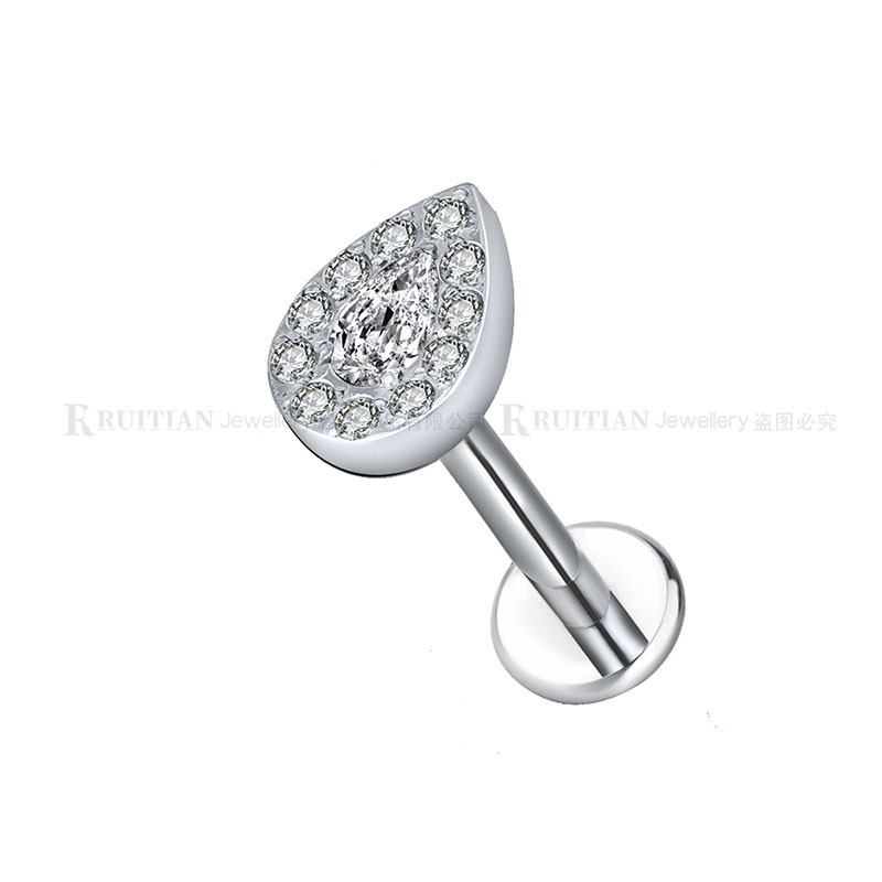| nameOriginal | F136 titanium alloy water drop zircon lip nail nose nail oval ear snail tongue nail belly button nail pure titanium perforated jewelry |