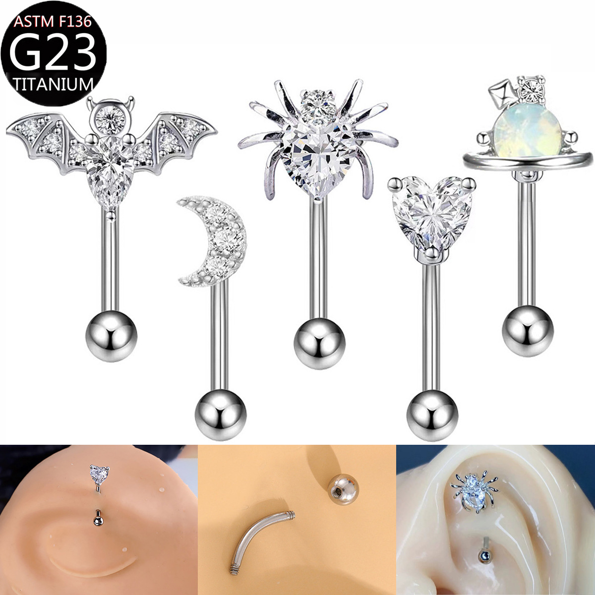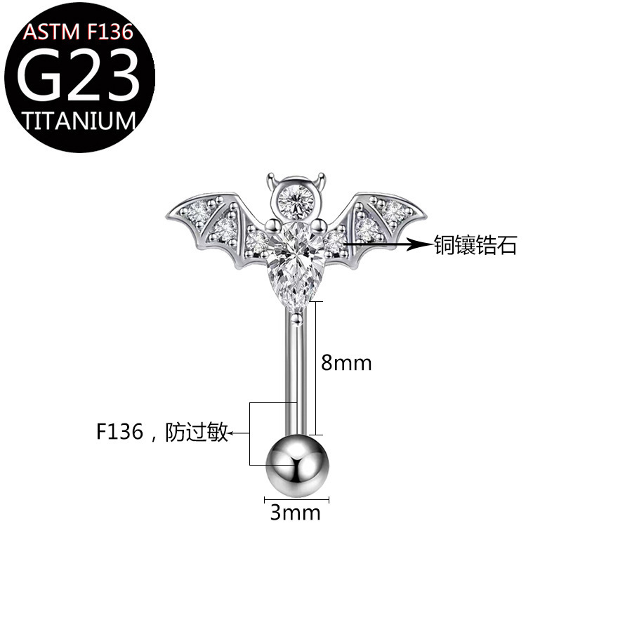 F136 Titanium Bat Spider Moon Love Zircon G23 Allergic Material Eyebrow Nail Ear Nail Puncture Jewelry Wholesale
