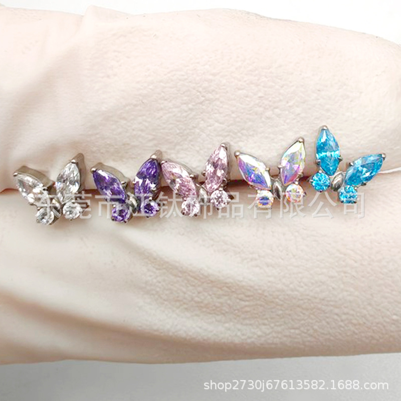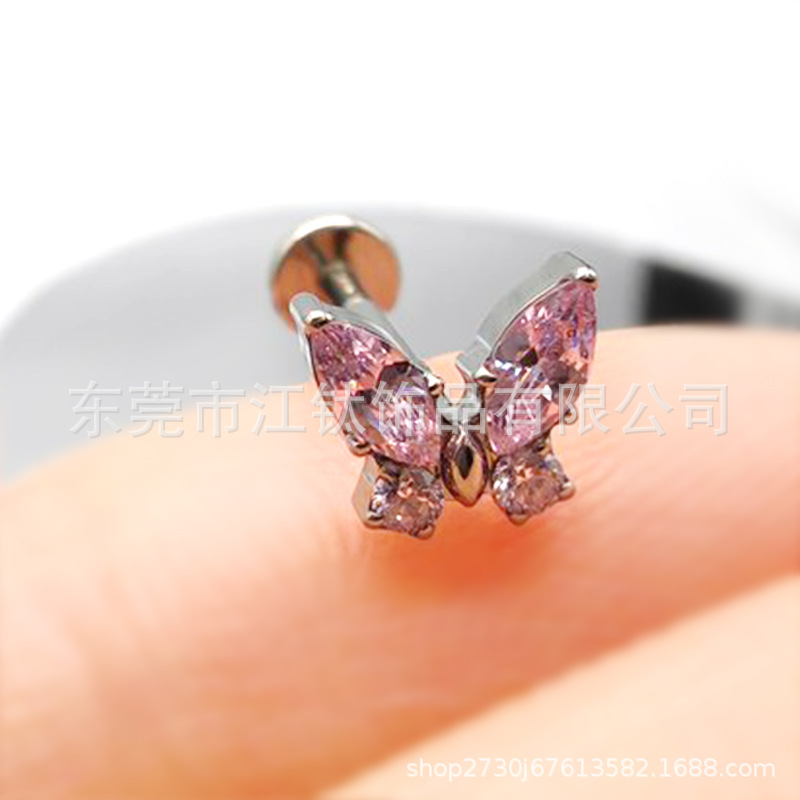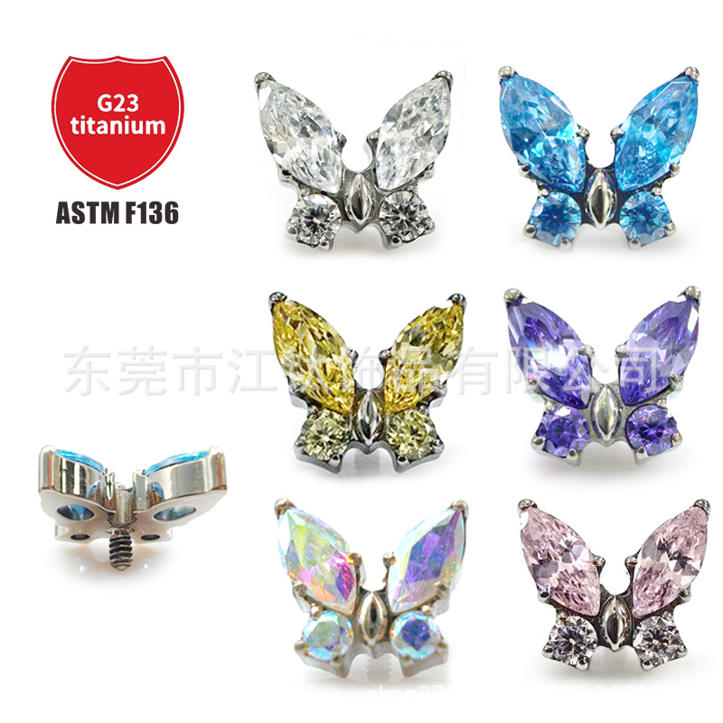 | nameOriginal | F136 titanium stud earrings zircon butterfly lip stud earrings cross-border G23 titanium alloy body piercing jewelry ear bone stud |