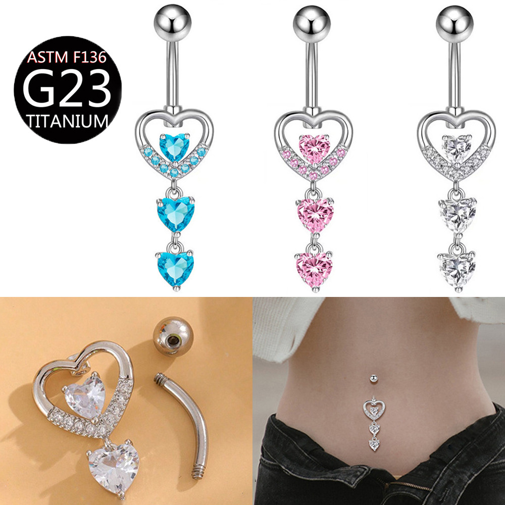 F316 titanium belly button ring G23 anti-allergic copper inlaid zircon peach belly button ring puncture jewelry for cross-border Amazon