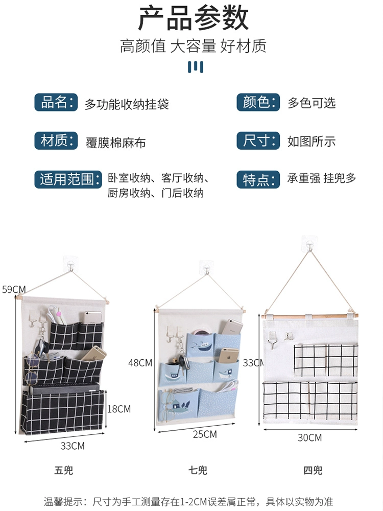 Fabric storage bag behind the door hanging bag wall hanging bedside hanging storage bag student dormitory storage artifact hanging pocket