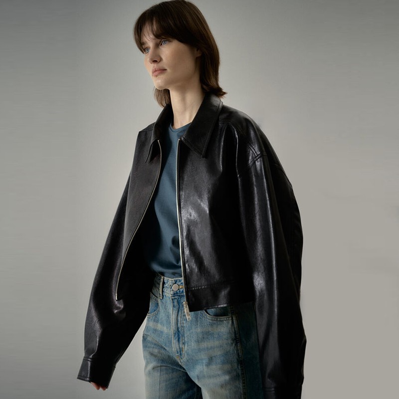 | nameOriginal | FACA * E PATTE * N short leather coat women's 2023 spring and autumn design sense niche black loose jacket top |