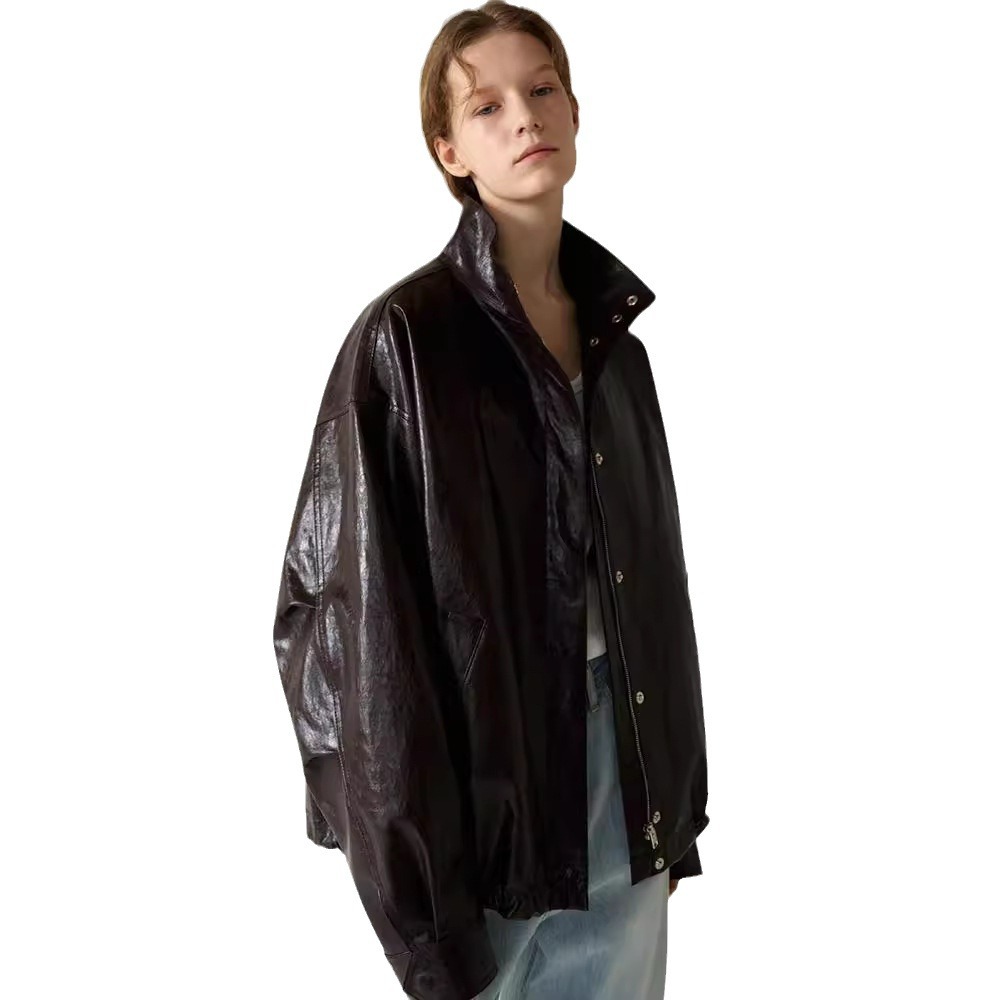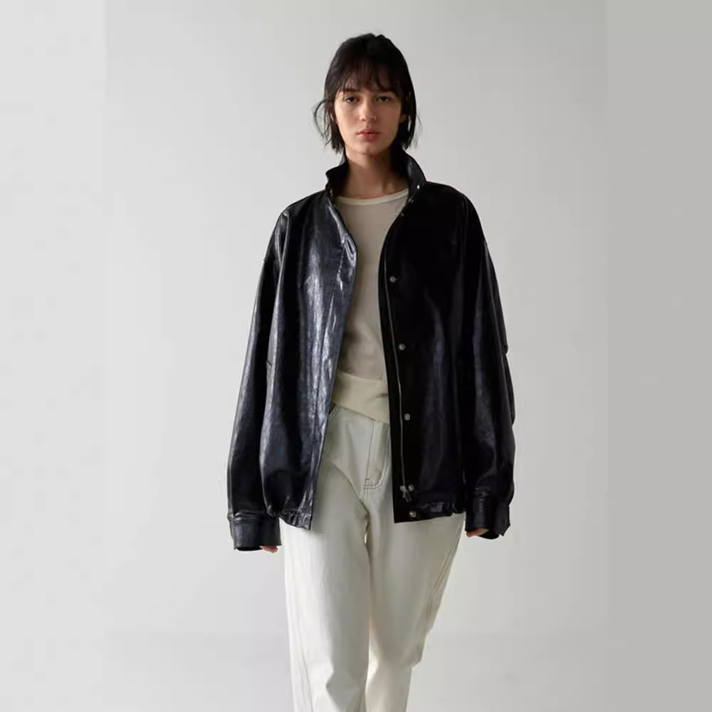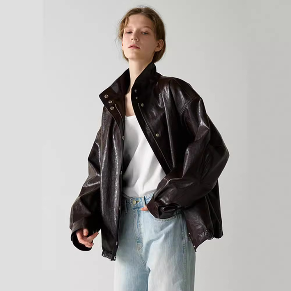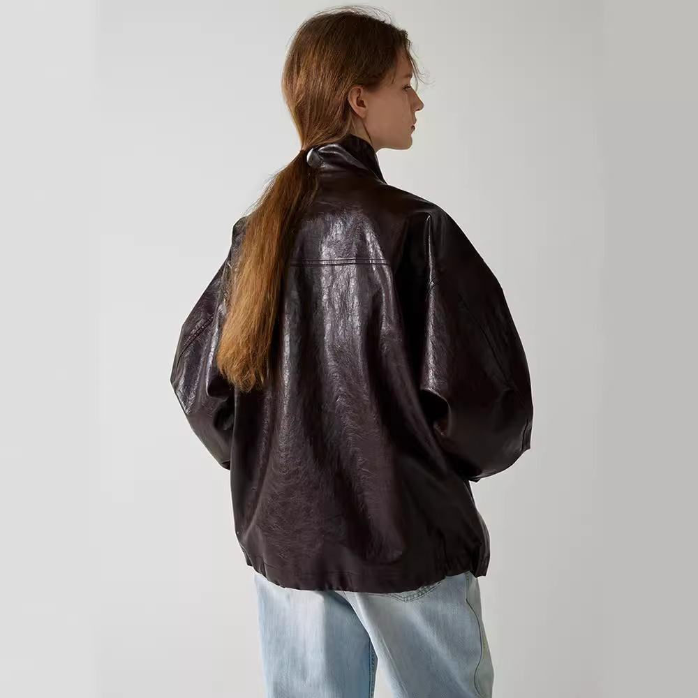 | nameOriginal | FACADE PATTERN Leather Coat Women's Spring Summer Autumn Loose Vertical Collar Motorcycle Commuter Jacket Top |