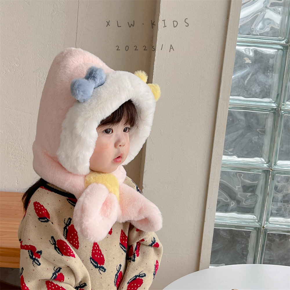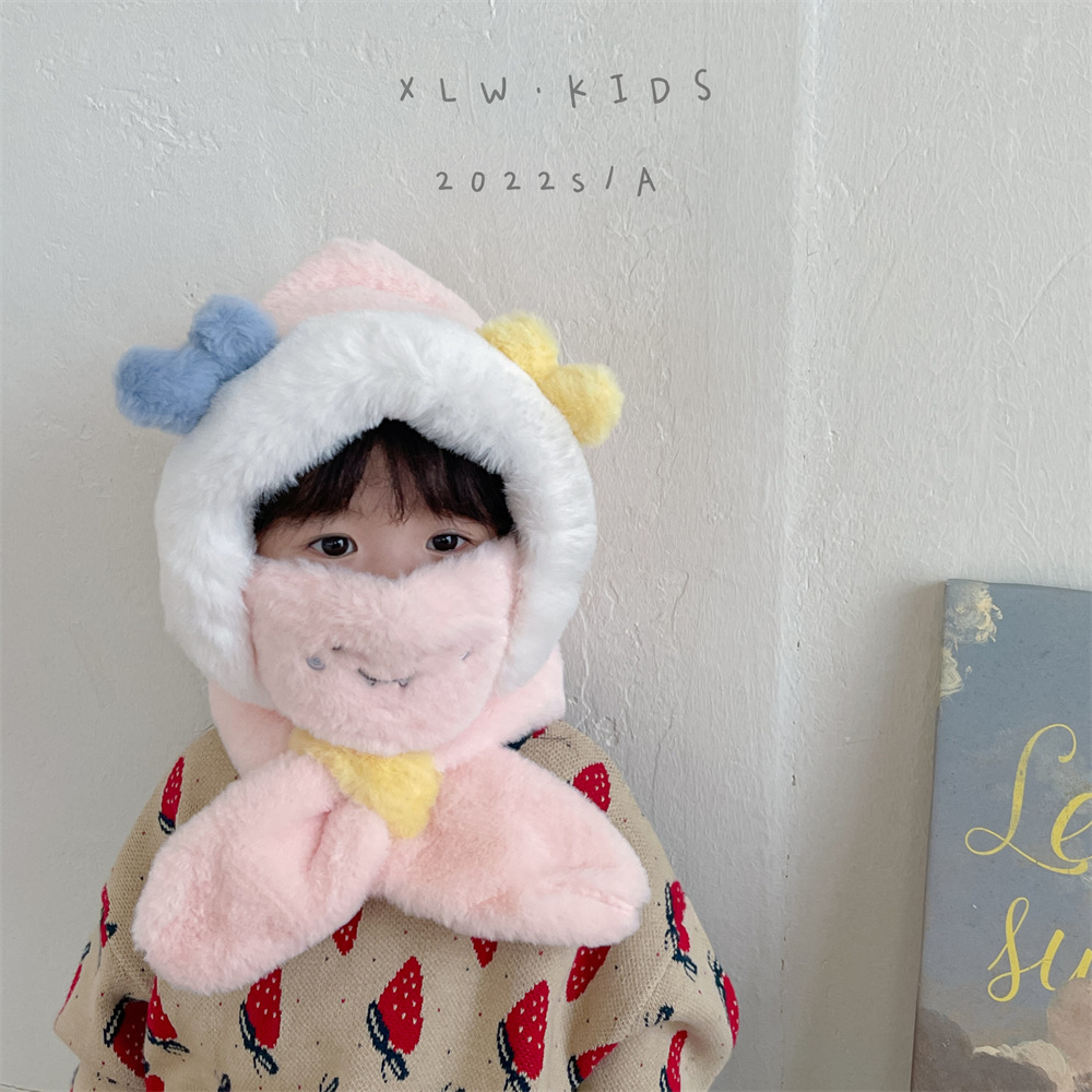 | nameOriginal | Face mask baby hat winter warm children's integrated hat scarf fleece-lined thickened out windproof pullover hat |
