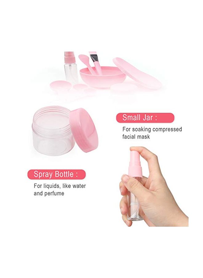 The 9 In 1 DIY Facial Mask Bowl Kit in Pink/Black is the ultimate solution for all your facial mask needs. This kit includes a bowl, a stick, a brush, a spray bottle, a measuring spoon, a sponge, a puffy cotton, a small mirror, and a storage bag. The bowl is made of high-quality plastic and is perfect for mixing your favorite facial mask ingredients. The stick and brush are designed to help you apply the mask evenly on your face. The spray bottle is perfect for adding water or any other liquid to your mask mixture. The measuring spoon ensures that you get the right amount of ingredients for your mask. The sponge and puffy cotton are perfect for removing the mask from your face. The small mirror is perfect for applying the mask on hard-to-reach areas. The storage bag is perfect for keeping all the items in one place. This kit is available in two colors, pink and black, and is perfect for anyone who loves to pamper themselves with a DIY facial mask.