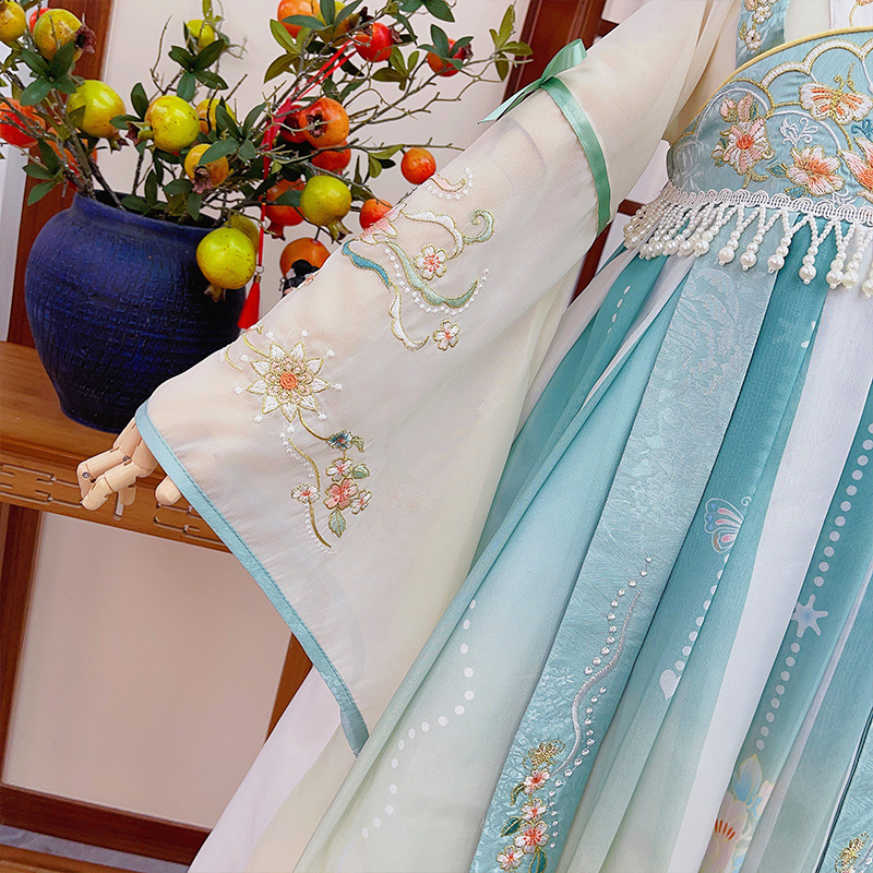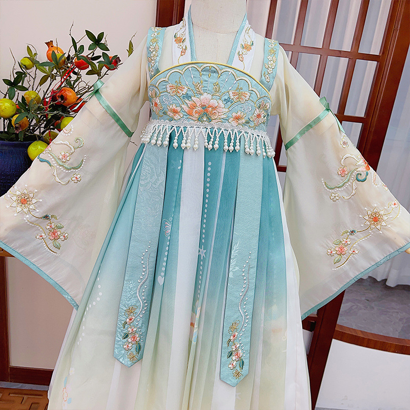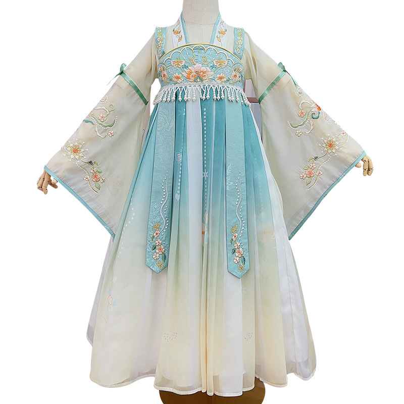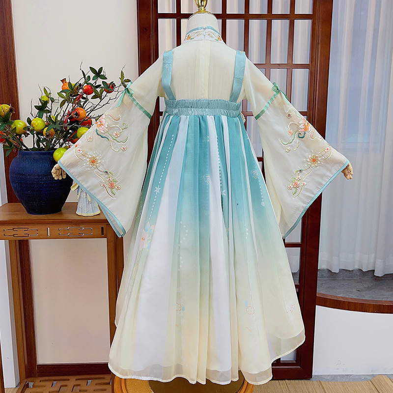 Factory 2024 New Spring and Autumn Girls' Tang Suit Antique Children's Chinese Style Blue Dress Long Sleeve Hanfu Skirt