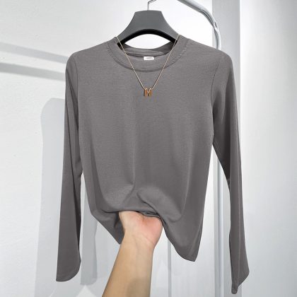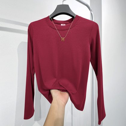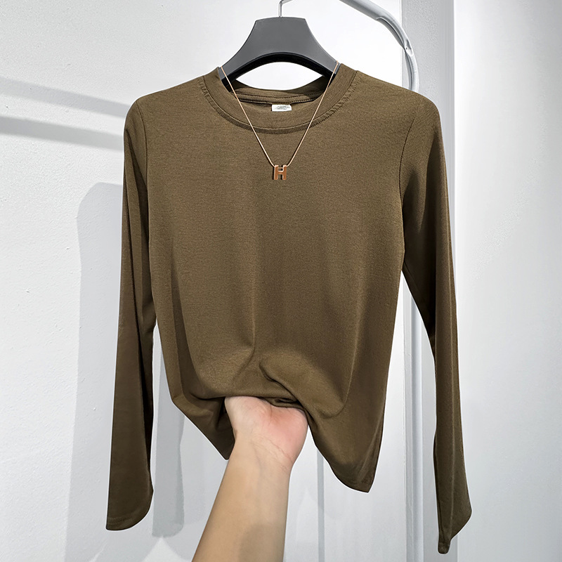 Factory bottoming shirt women’s suit inner wear spring, autumn and winter round neck long sleeve T-shirt Slim top solid color simple Slimming ins
