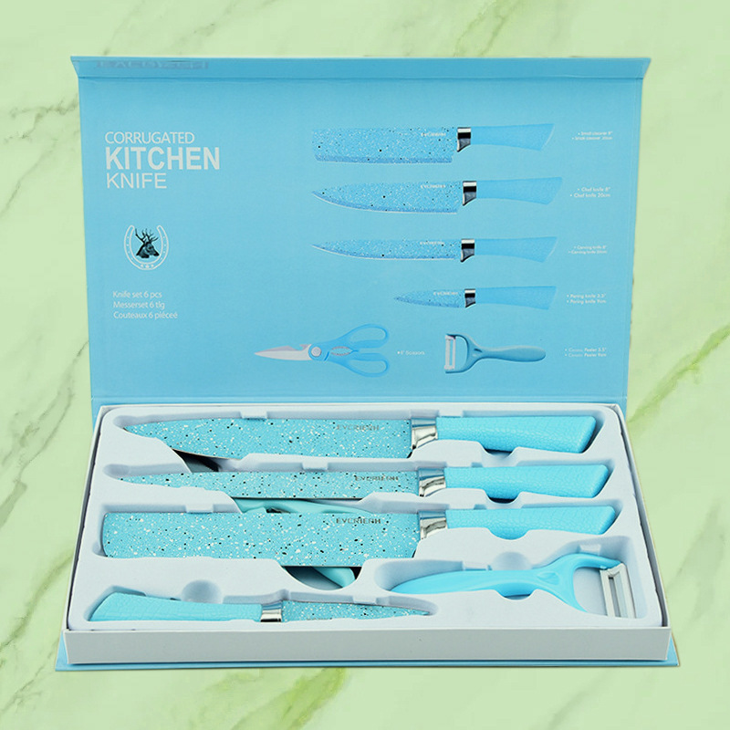Factory color spray point horseshoe handle set knife kitchen stainless steel six piece kitchen knife fruit knife gift box suit