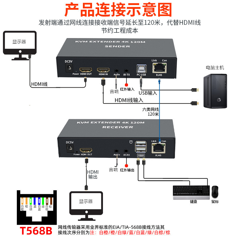 | nameOriginal | Factory cross-border 4K 120m KVM Extender cable RJ45 to HDMI USB Extender IR audio |