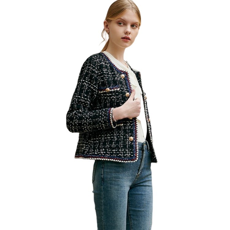 | nameOriginal | Factory direct 2022 Spring and Autumn new black and white plaid double-breasted tweed plus size European and American style coat women |